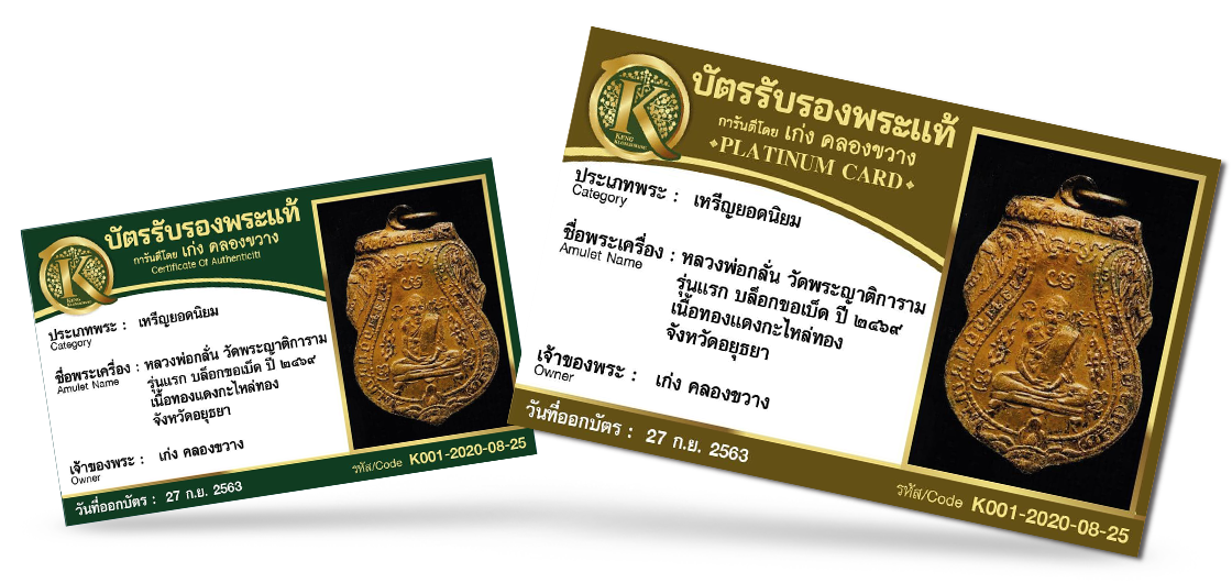 บัตรับรองพระแท้ให้ไว้เพื่อแสดงว่า วัตถุมงคลตามรายการข้างต้น