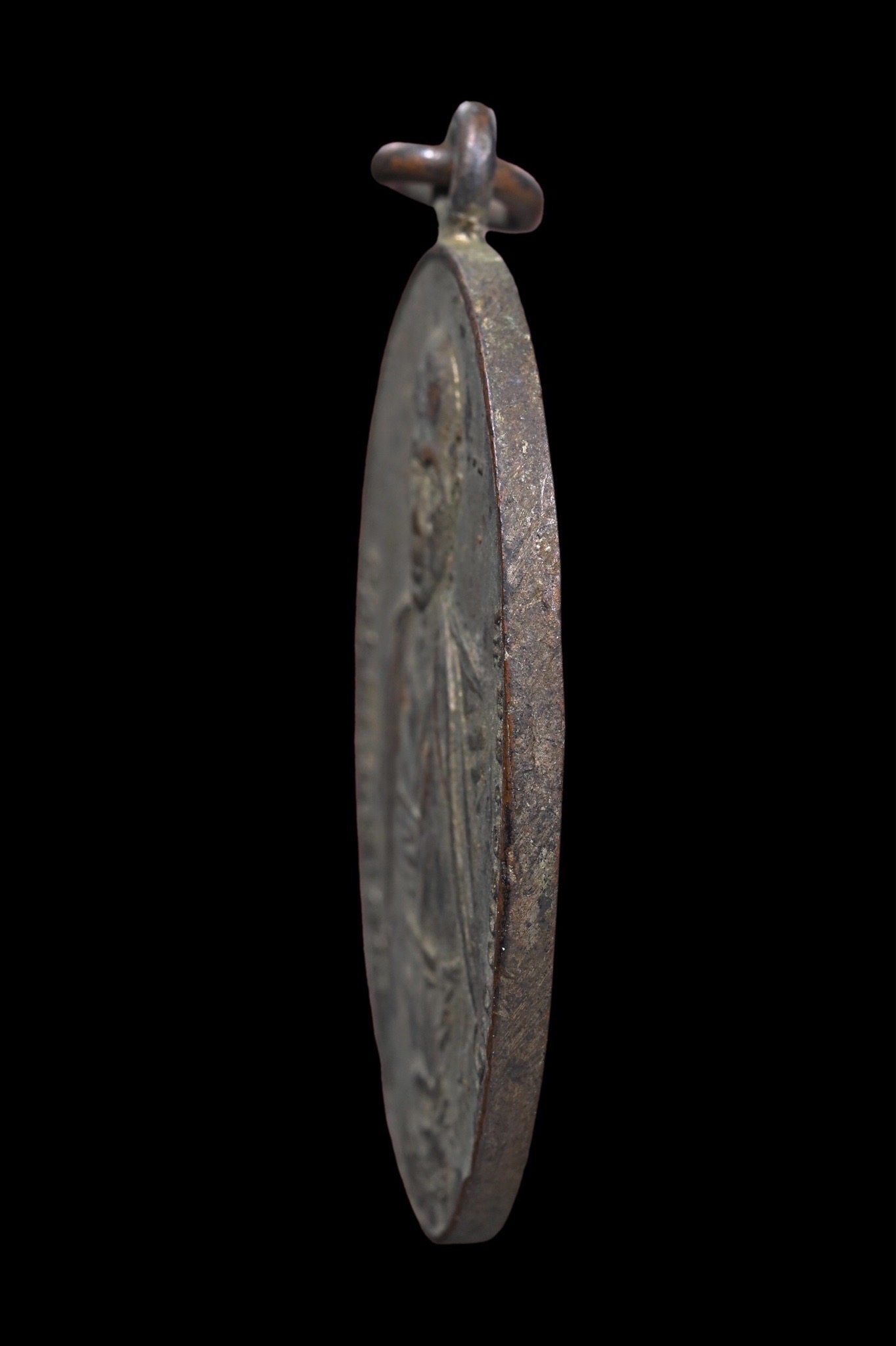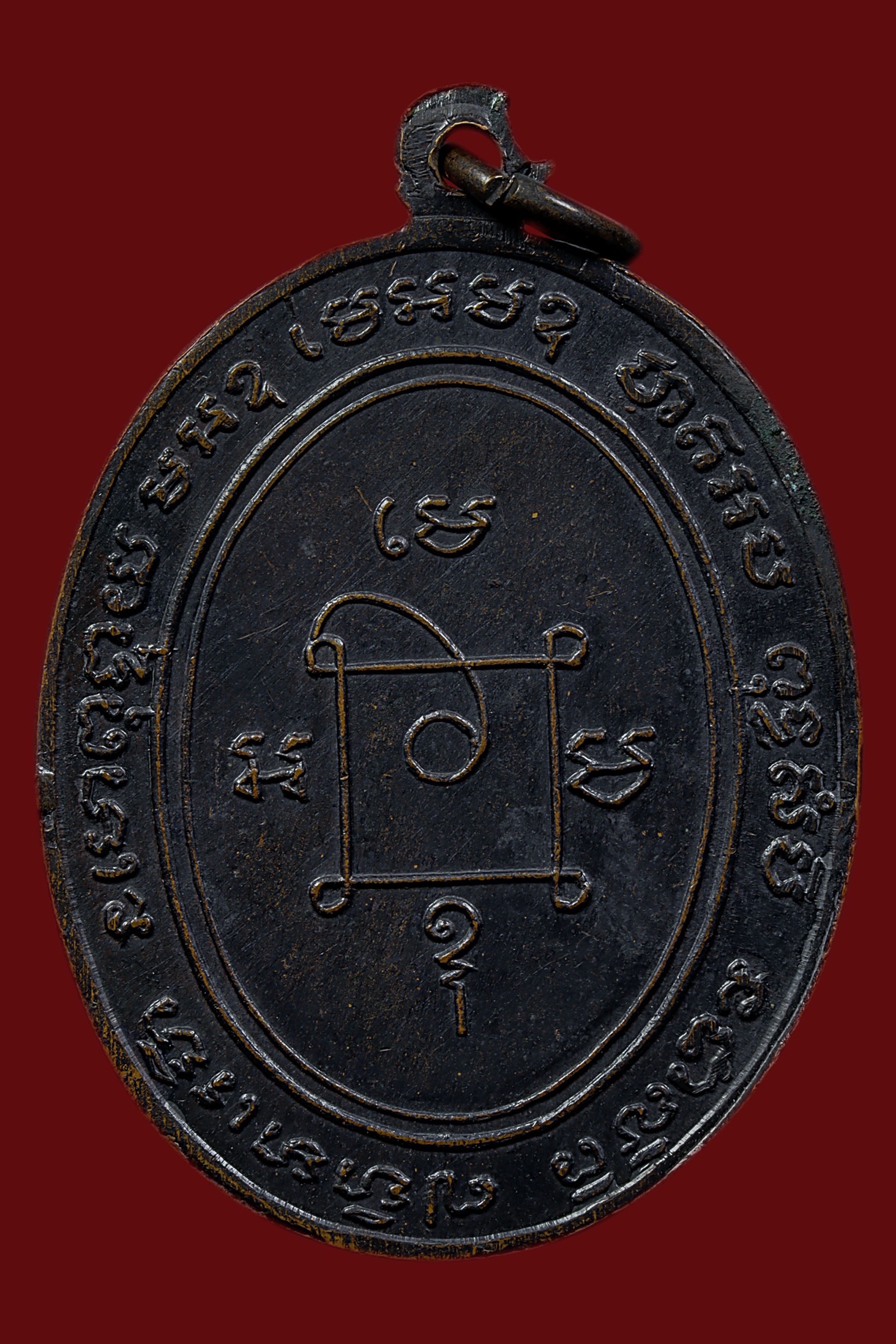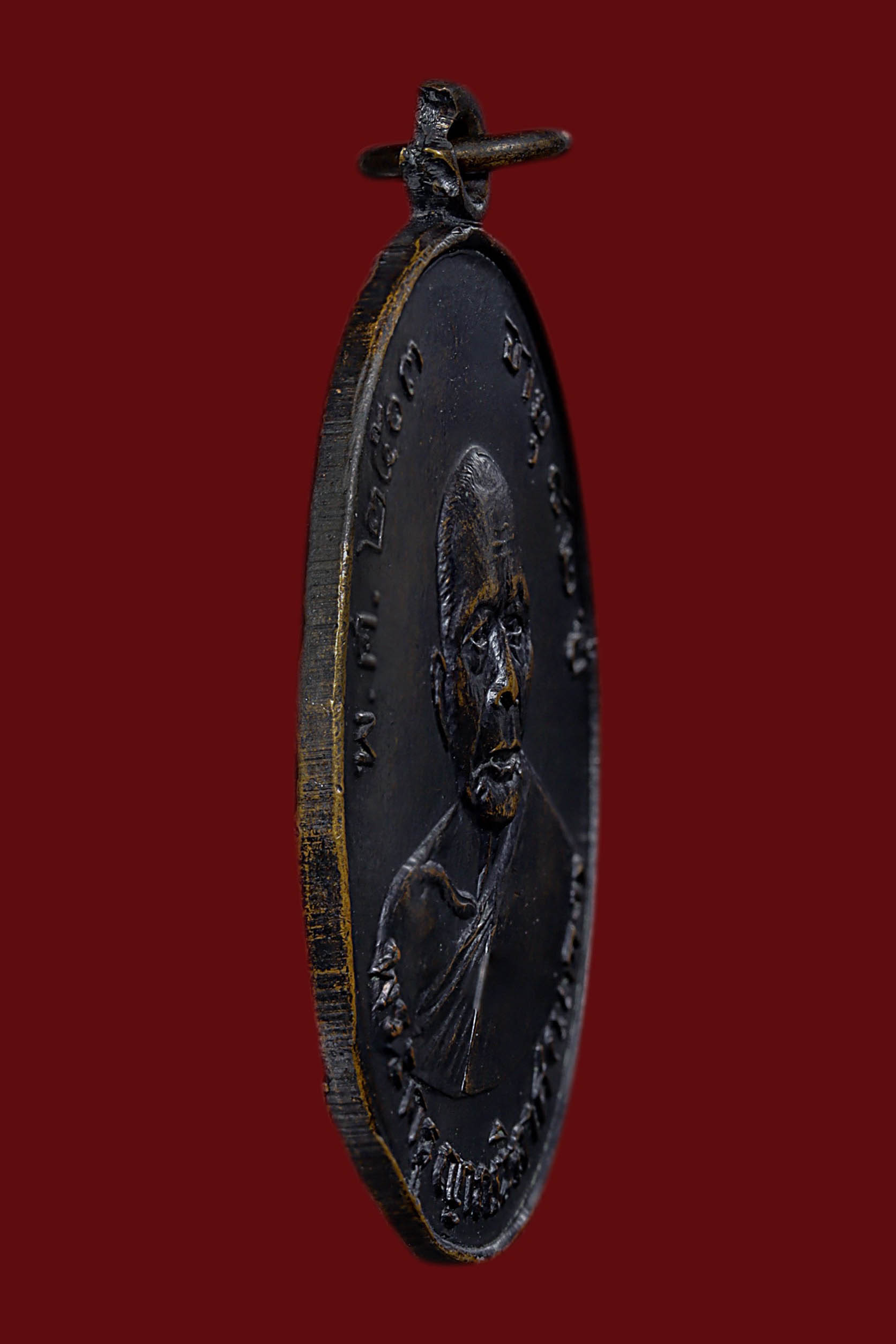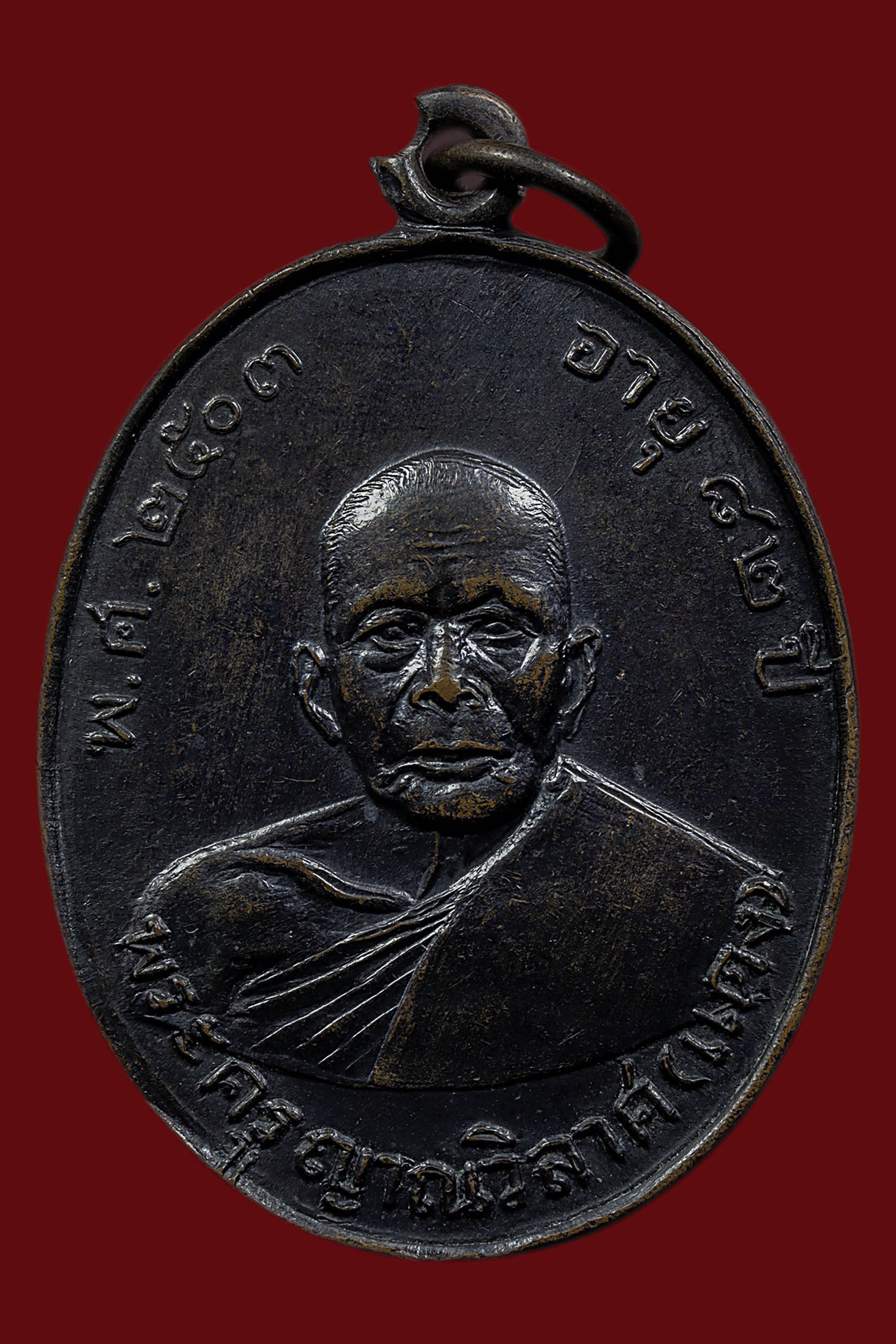เหรียญหลวงพ่อแดง วัดเขาบันไดอิฐ รุ่นแรก ปี 2503 เนื้อทองแดงรมดำ จังหวัดเพชรบุรี