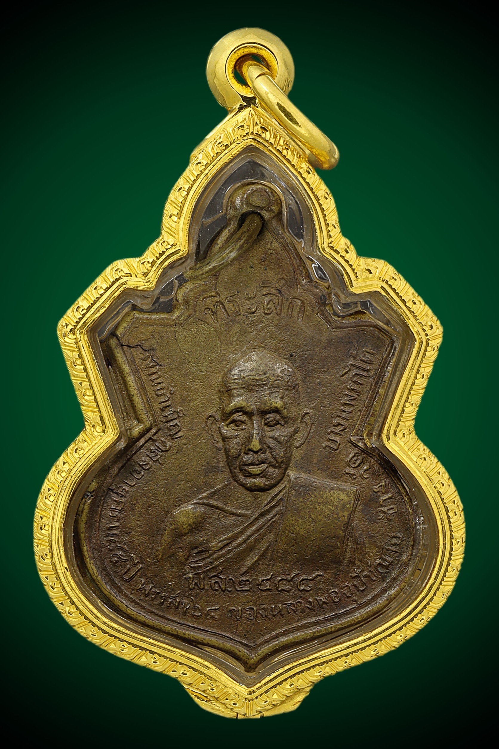 พระครูบาศรีวิชัย วัดบ้านปาง บล็อกหน้าหนุ่มประคำเส้น ปี 2492 เนื้อทองแดงกะไหล่ทอง จังหวัดลำพูน (KA0532)