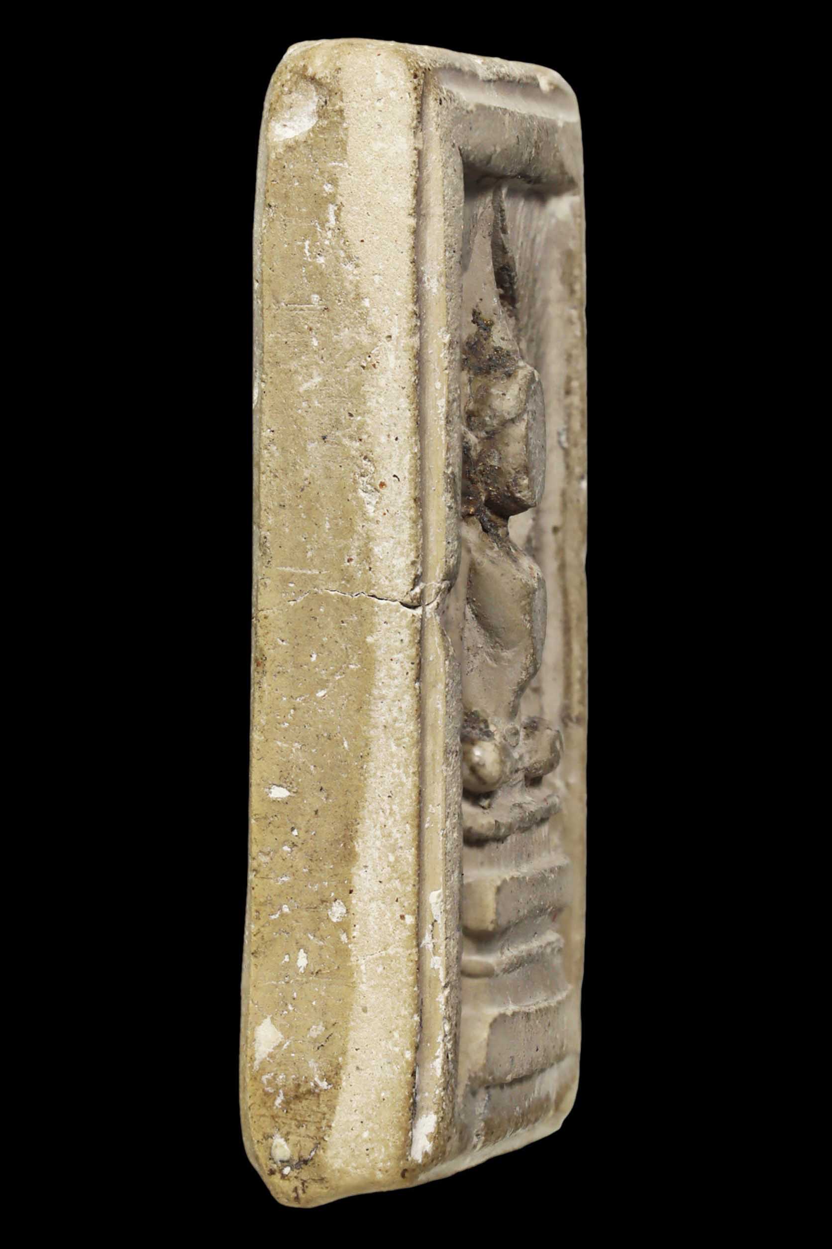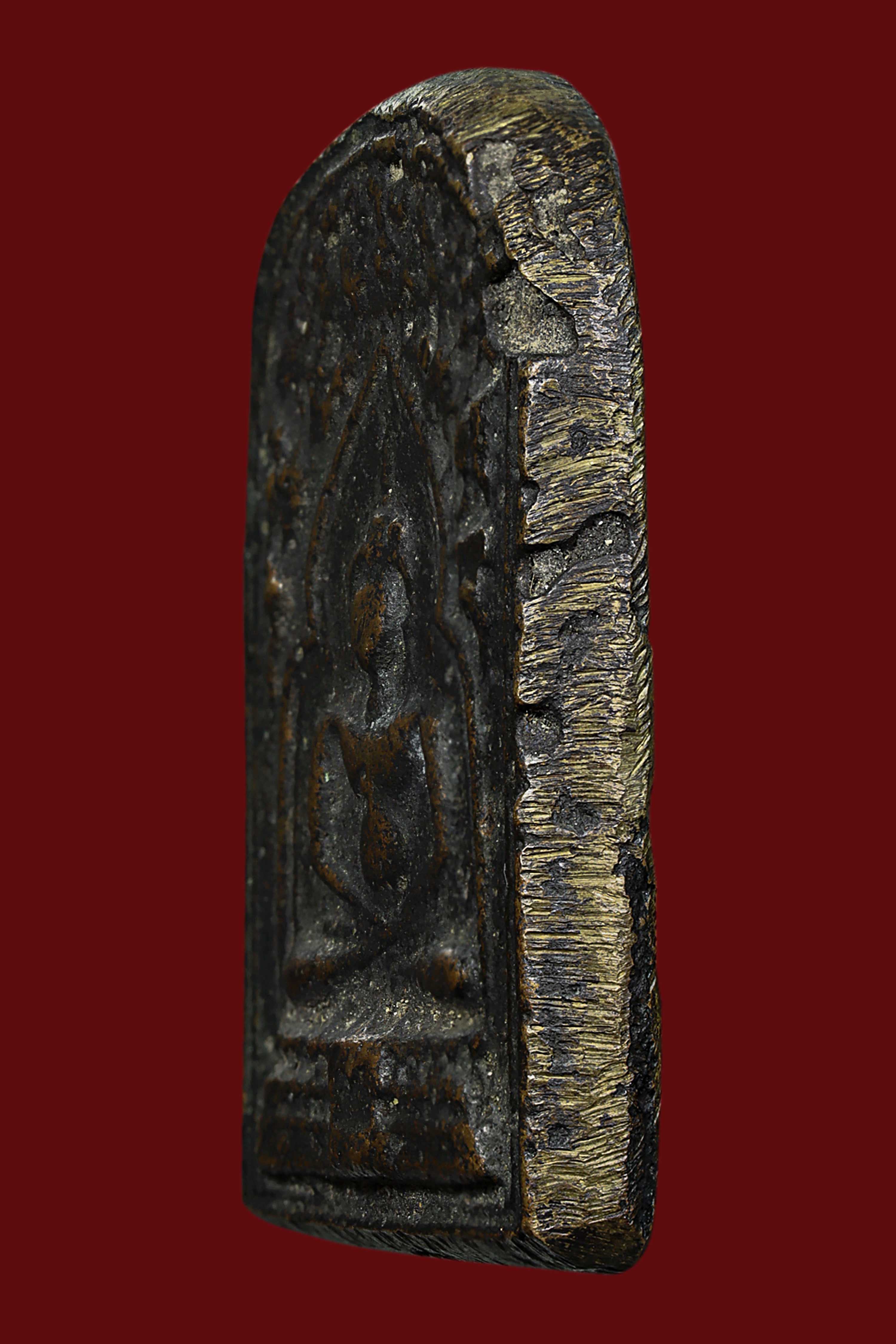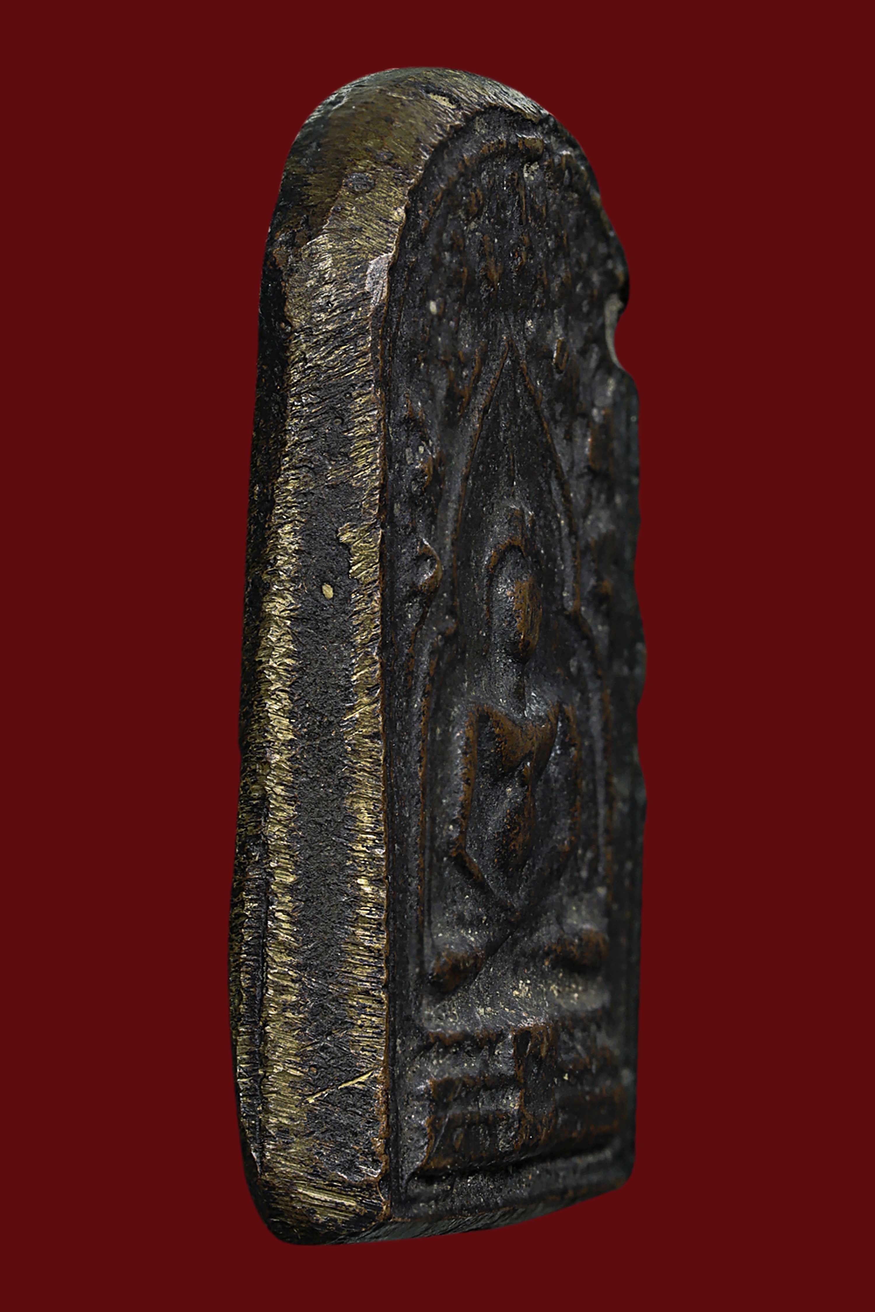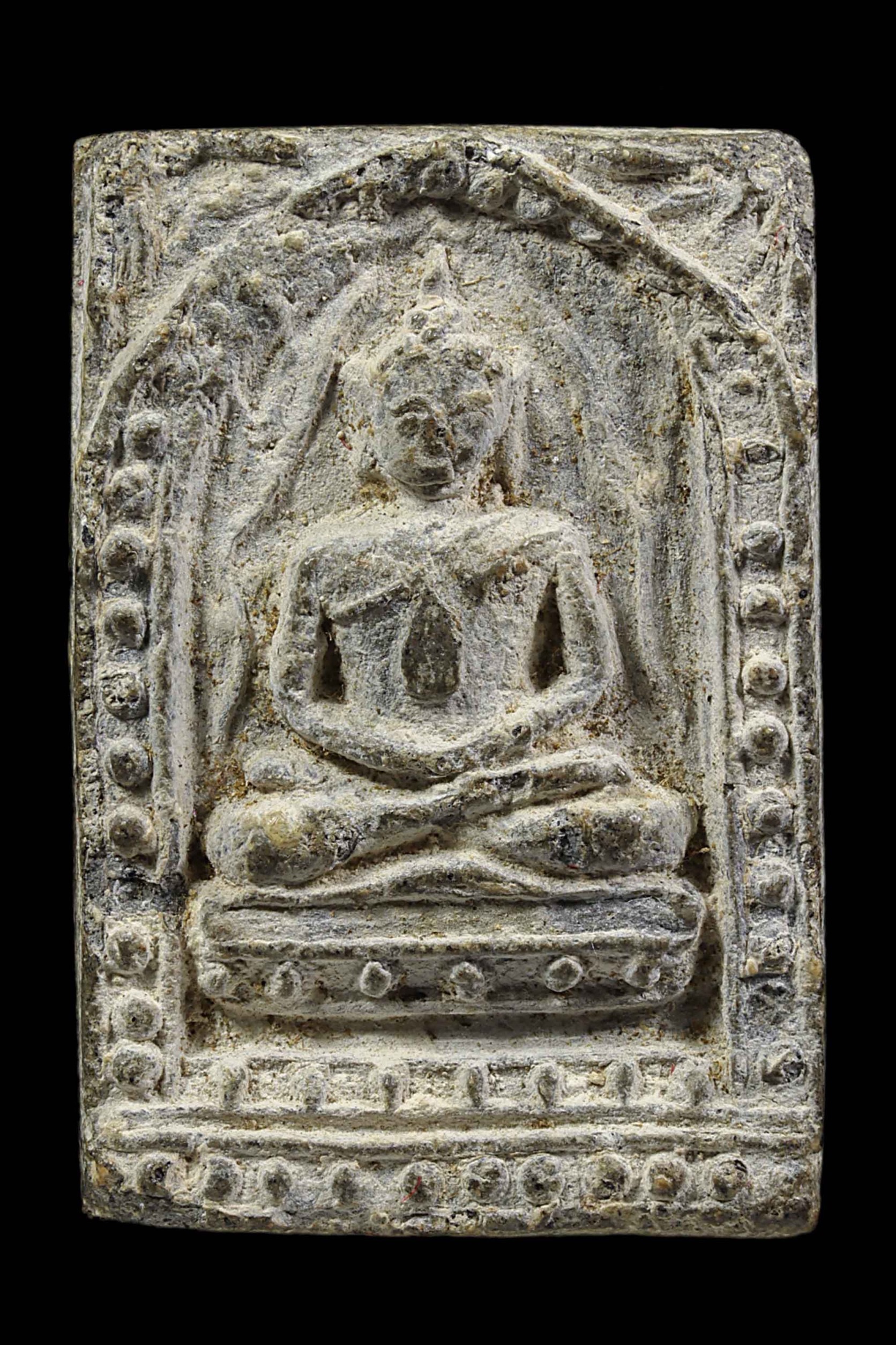 พระกรุวัดท้ายตลาด พิมพ์สมาธิแหวกม่าน ข้างเม็ด เนื้อผงผสมผงใบลาน จังหวัดกรุงเทพ