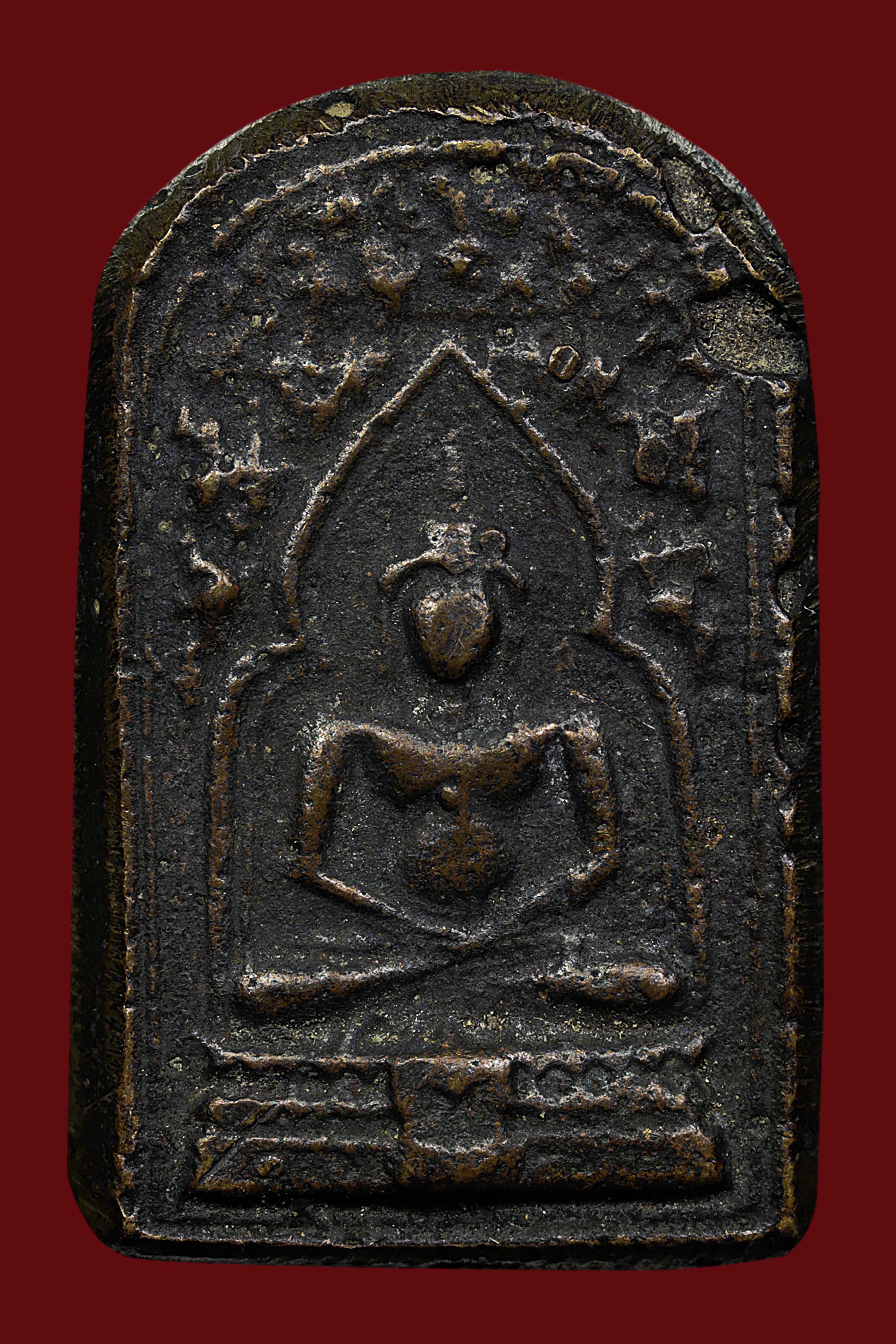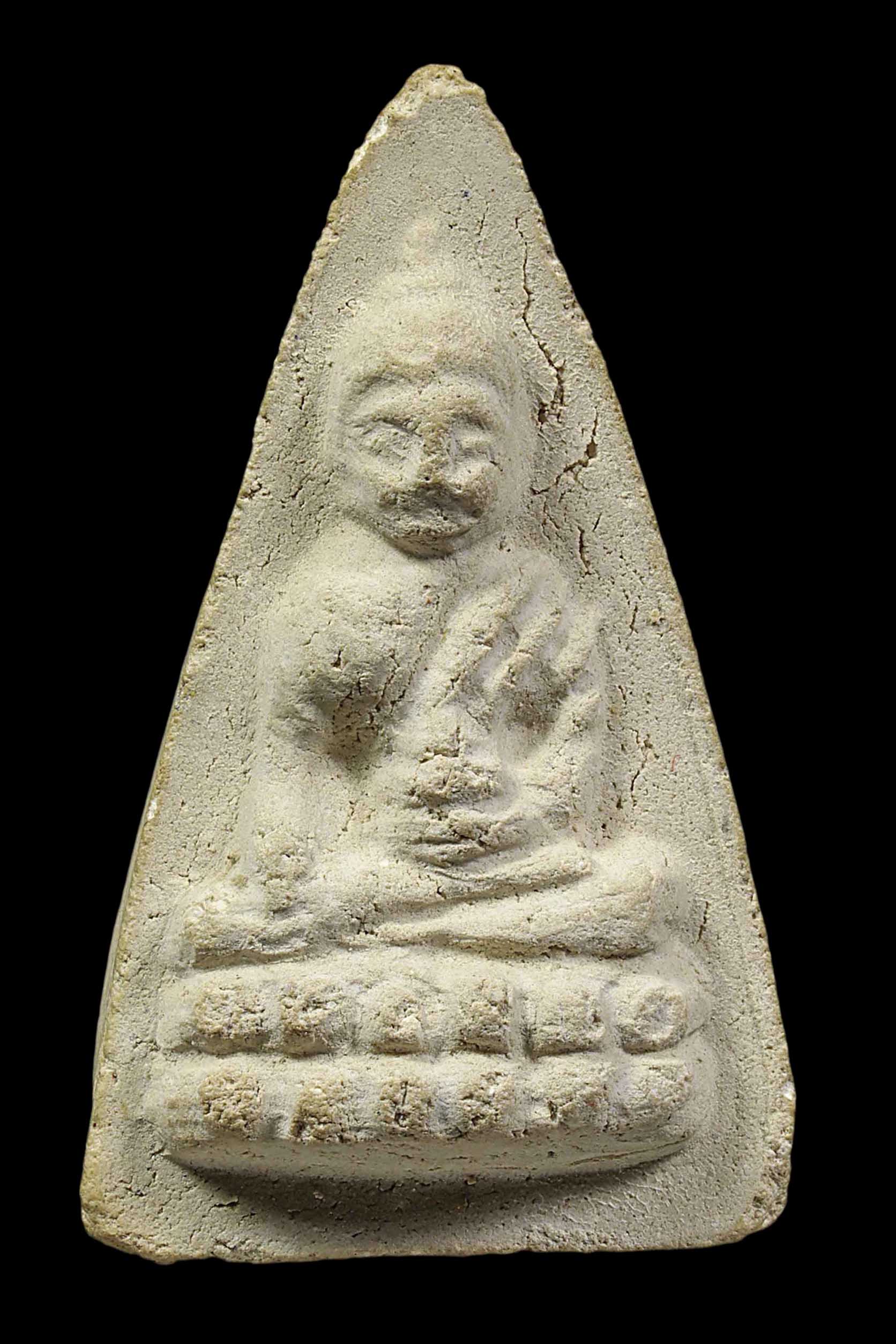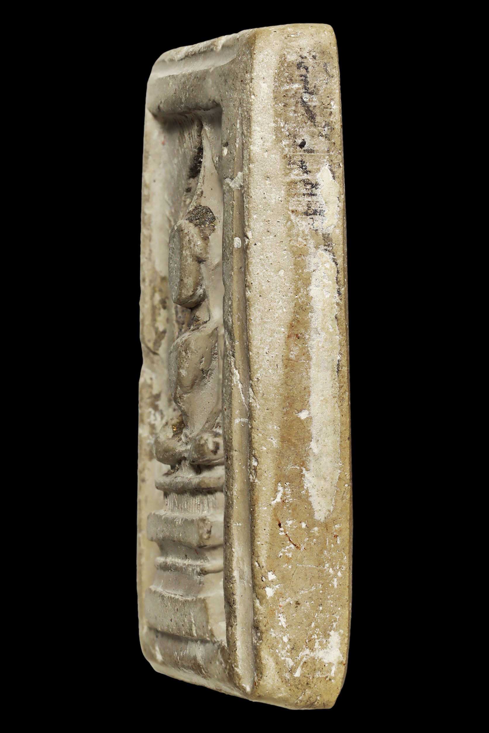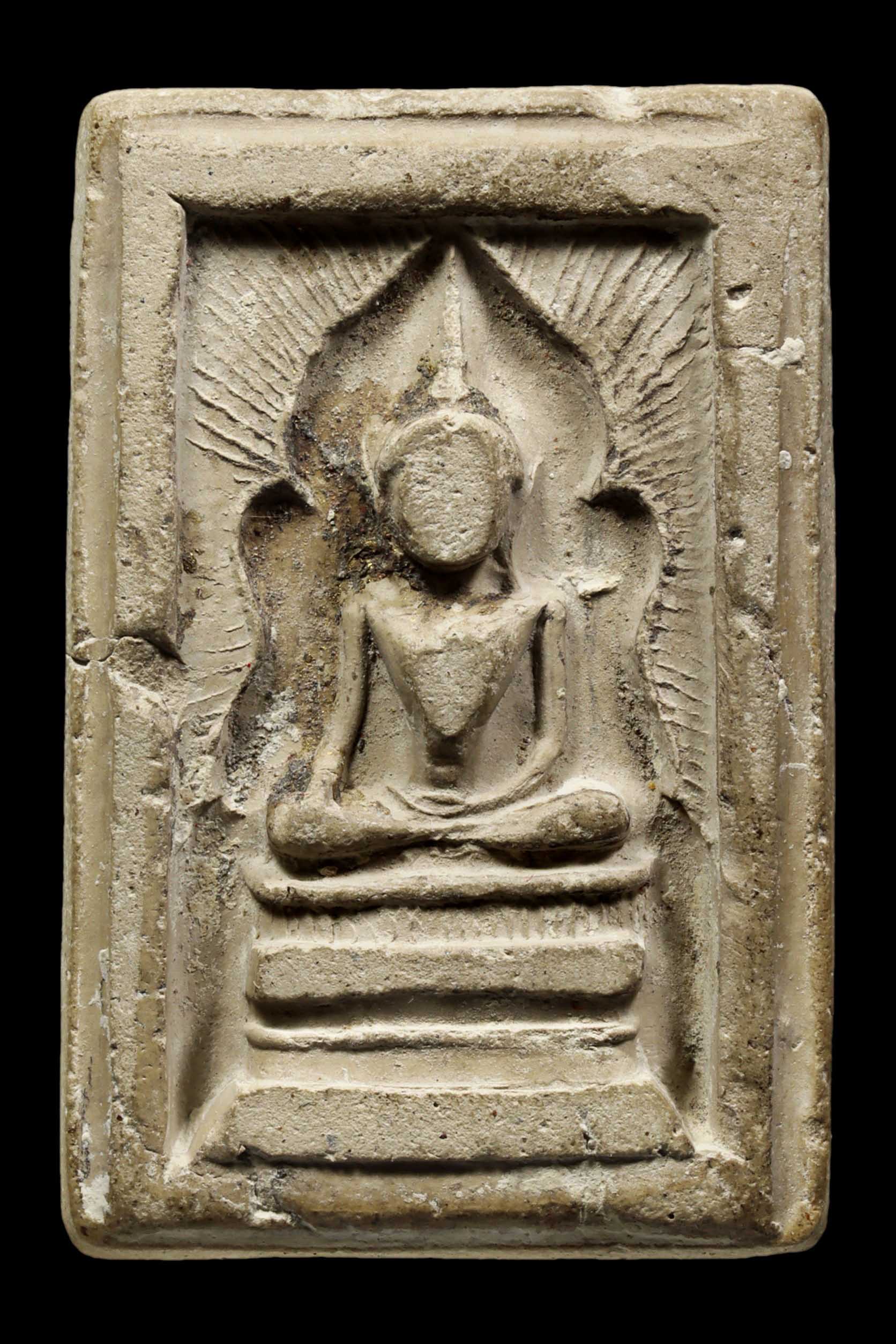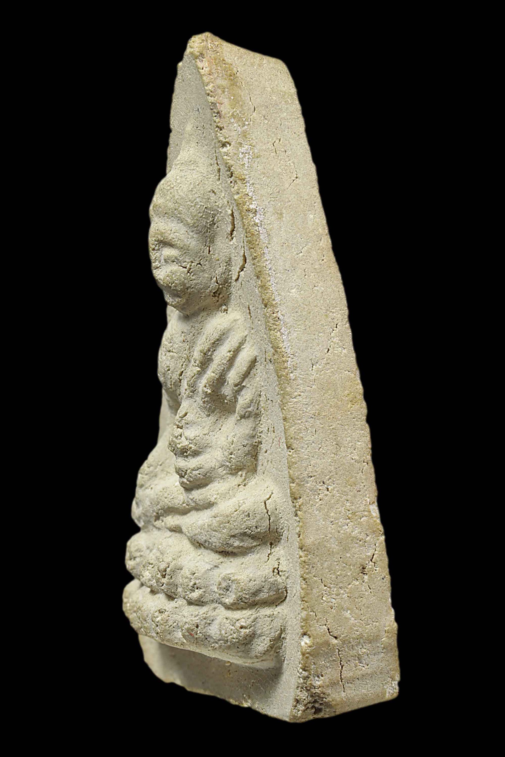 พระกรุวัดท้ายตลาด พิมพ์สมาธิแหวกม่าน ข้างเม็ด เนื้อผงผสมผงใบลาน จังหวัดกรุงเทพ