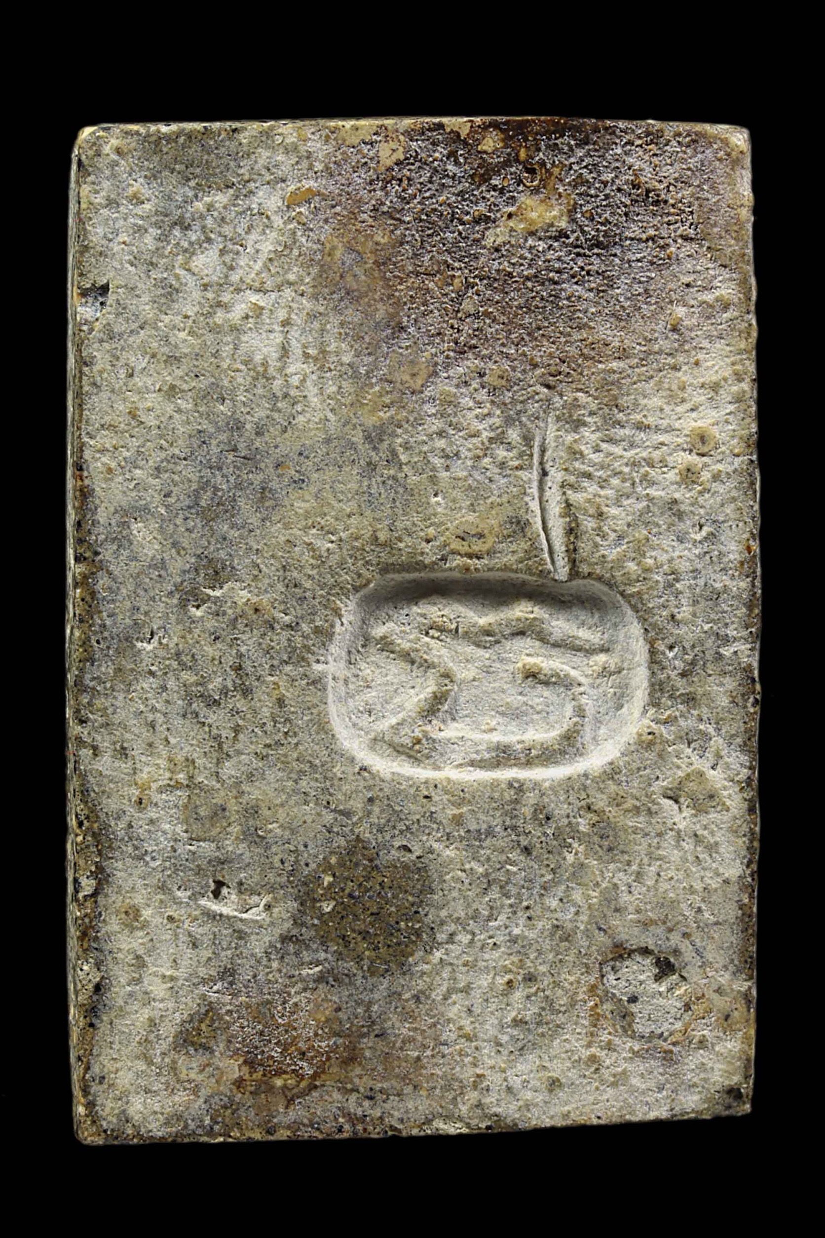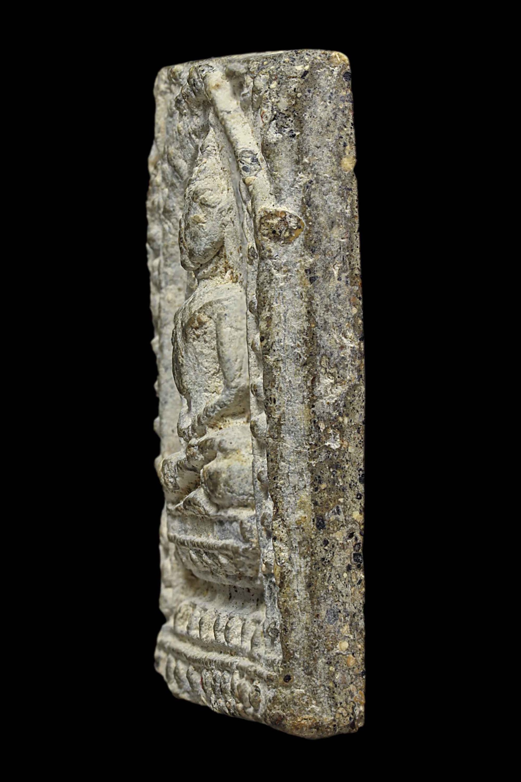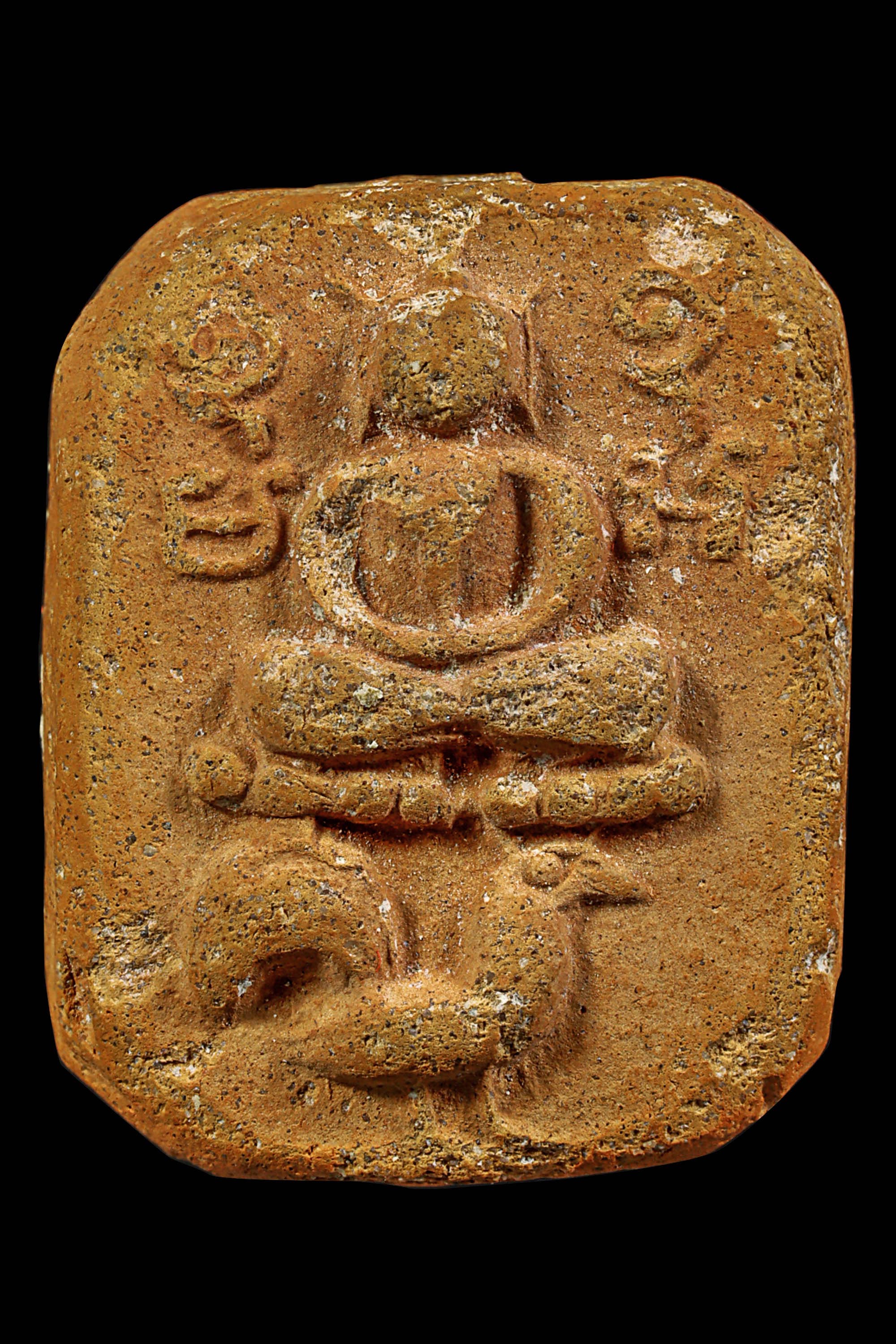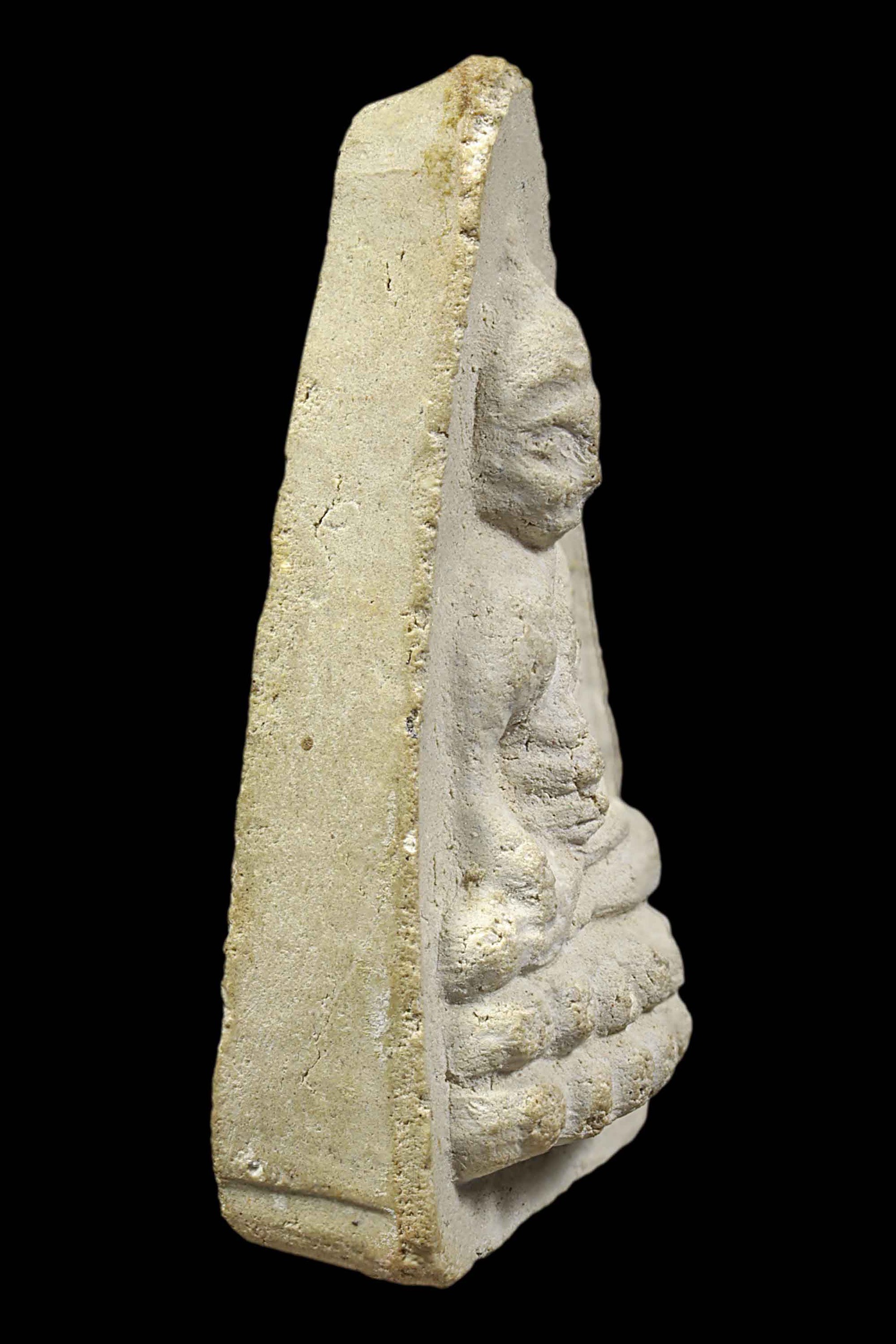พระกรุวัดท้ายตลาด พิมพ์สมาธิแหวกม่าน ข้างเม็ด เนื้อผงผสมผงใบลาน จังหวัดกรุงเทพ
