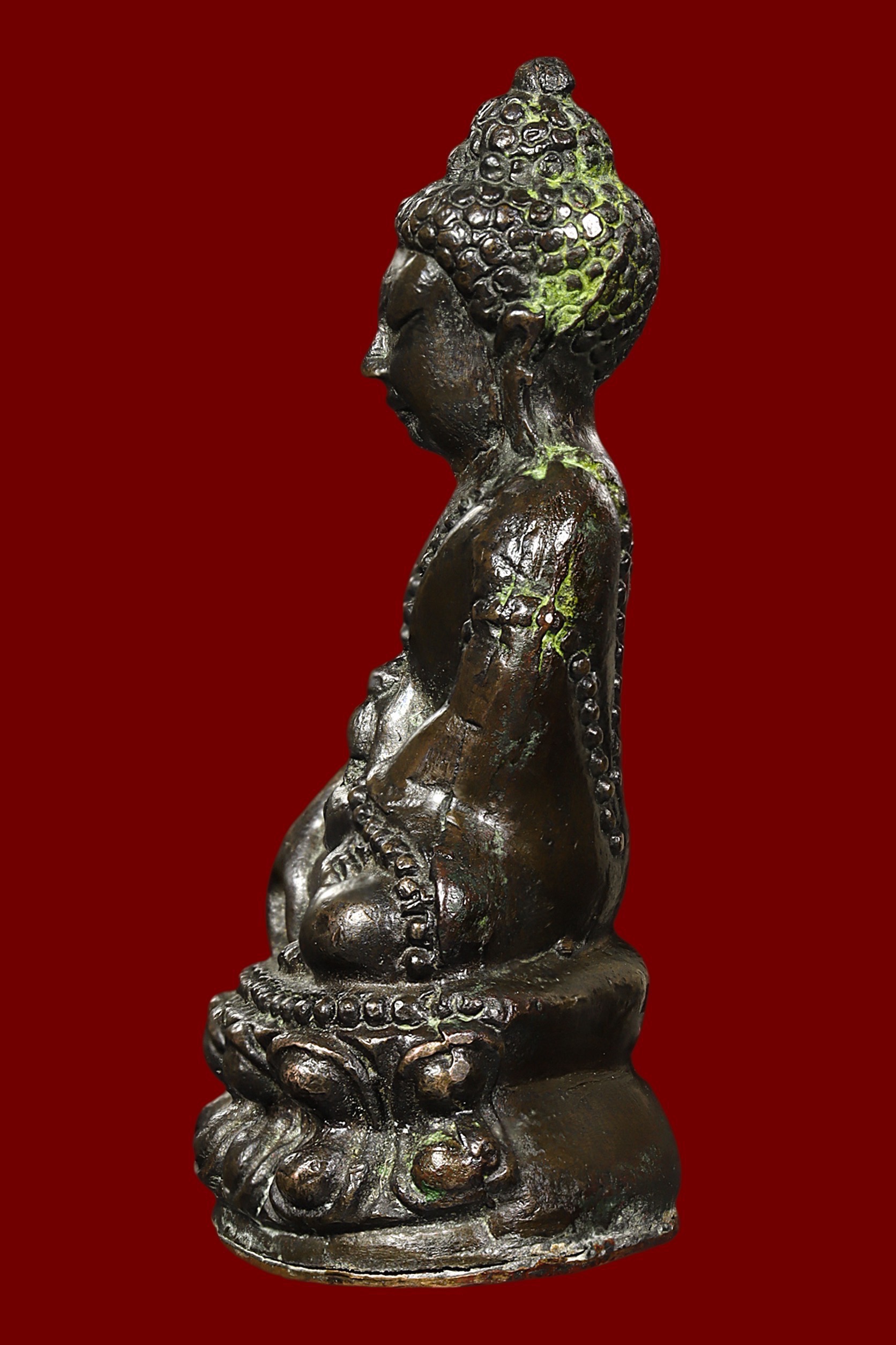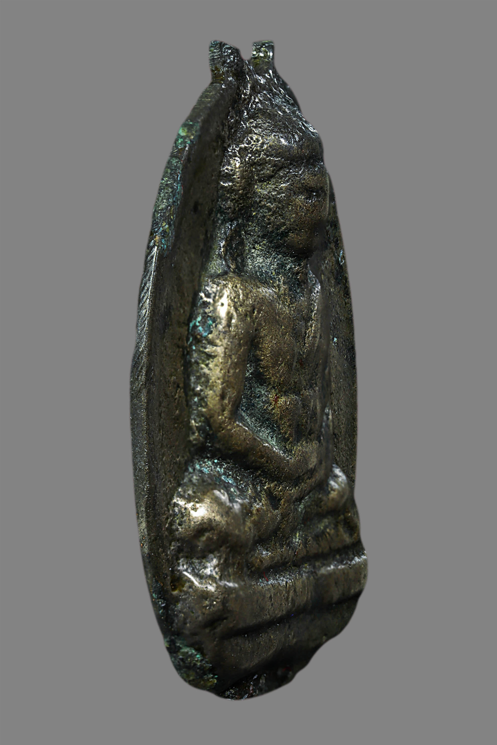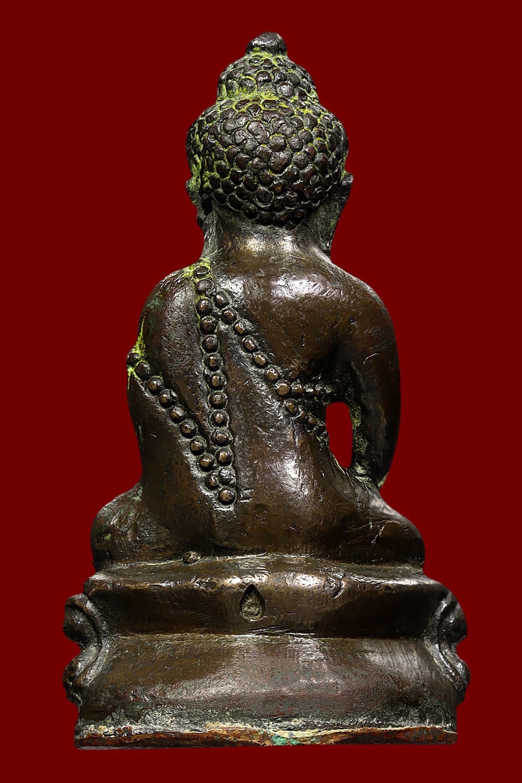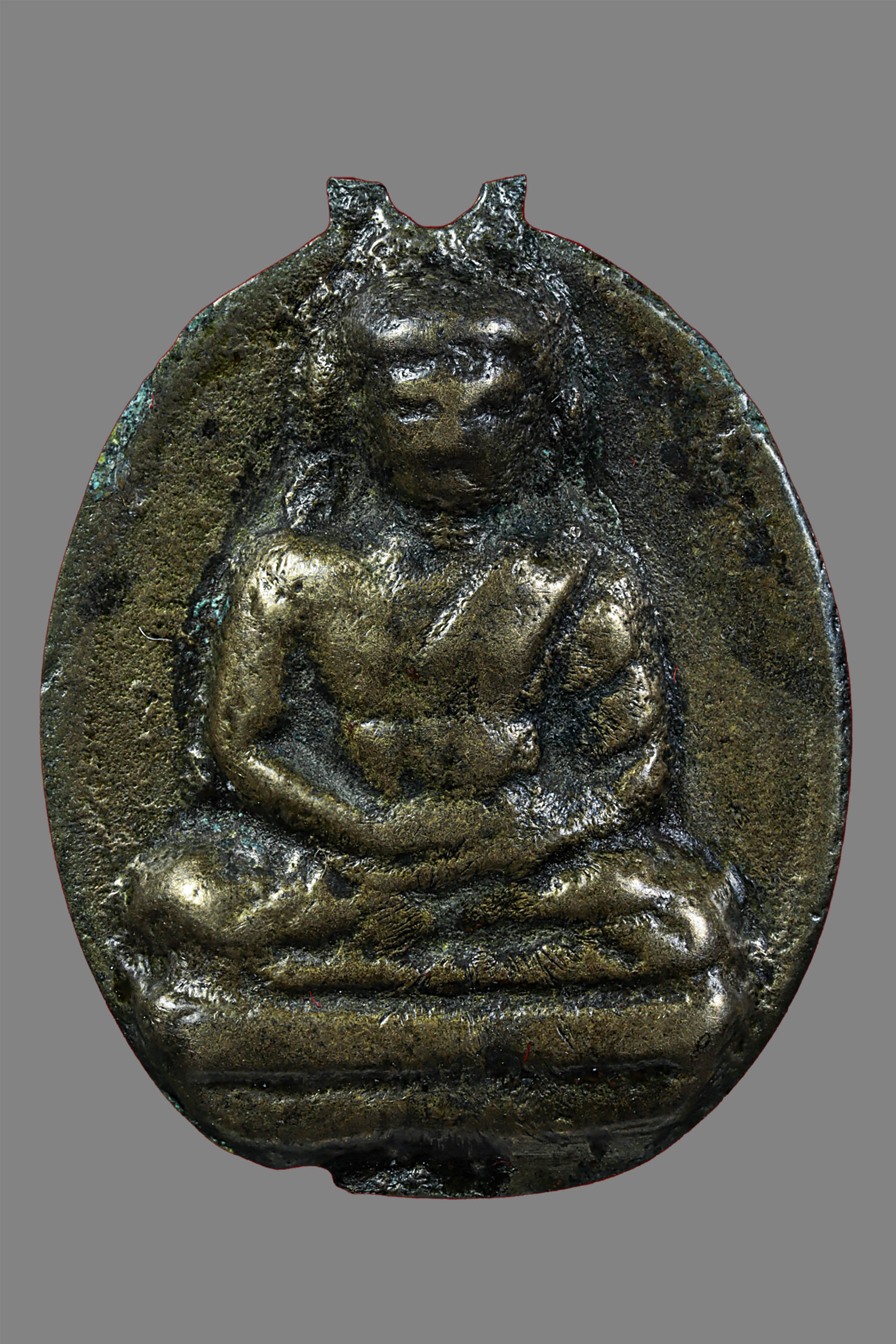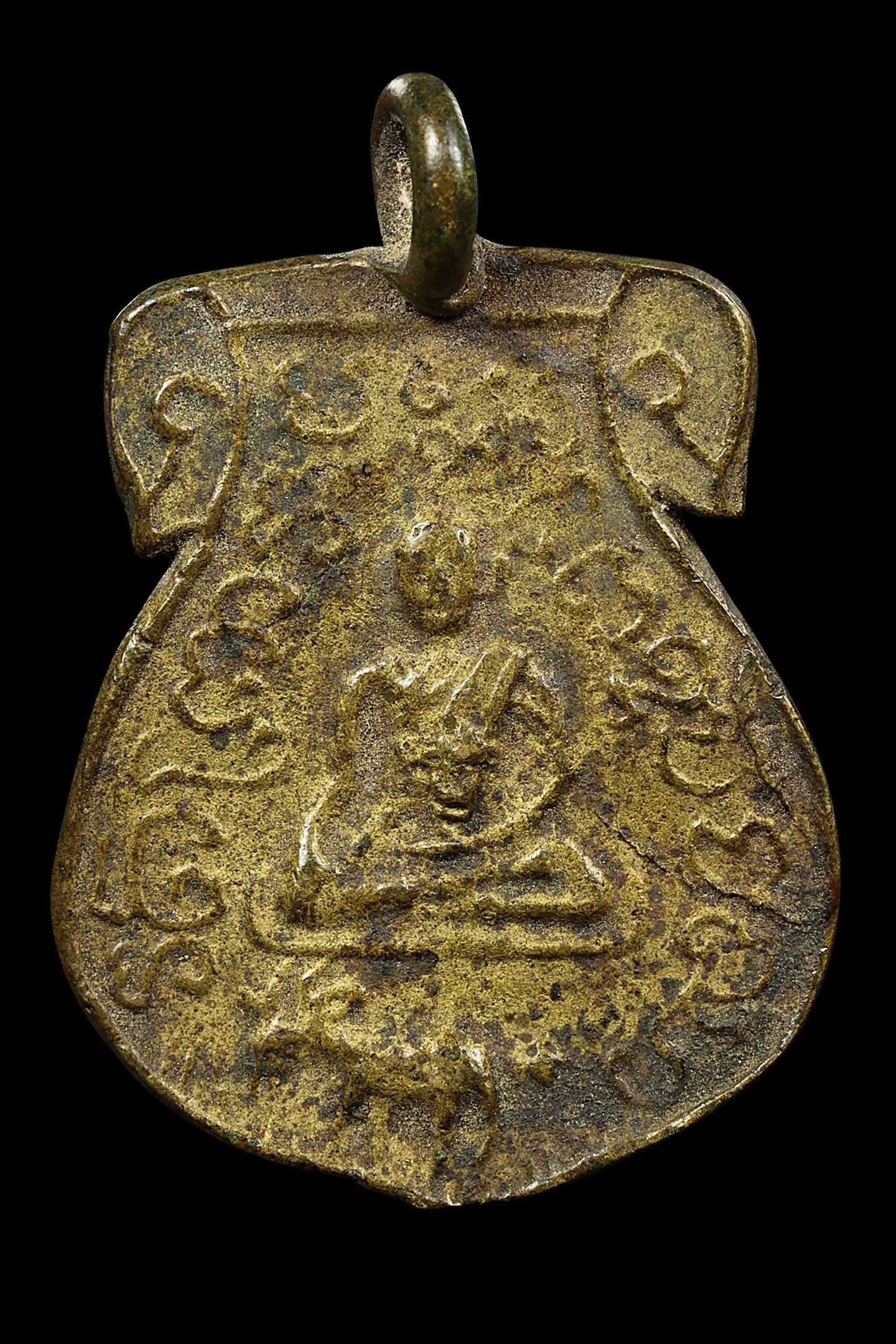 พระกรุวัดท้ายตลาด พิมพ์สมาธิแหวกม่าน ข้างเม็ด เนื้อผงผสมผงใบลาน จังหวัดกรุงเทพ