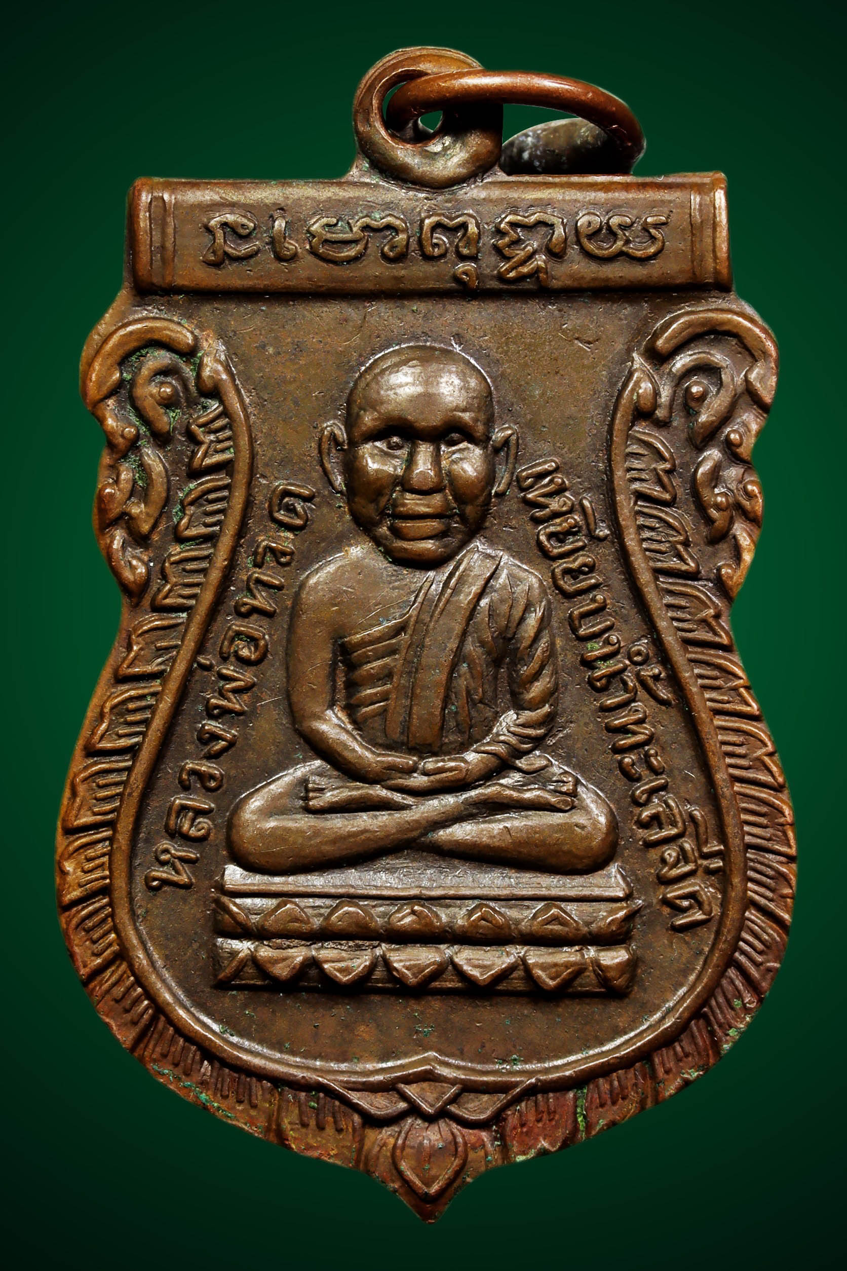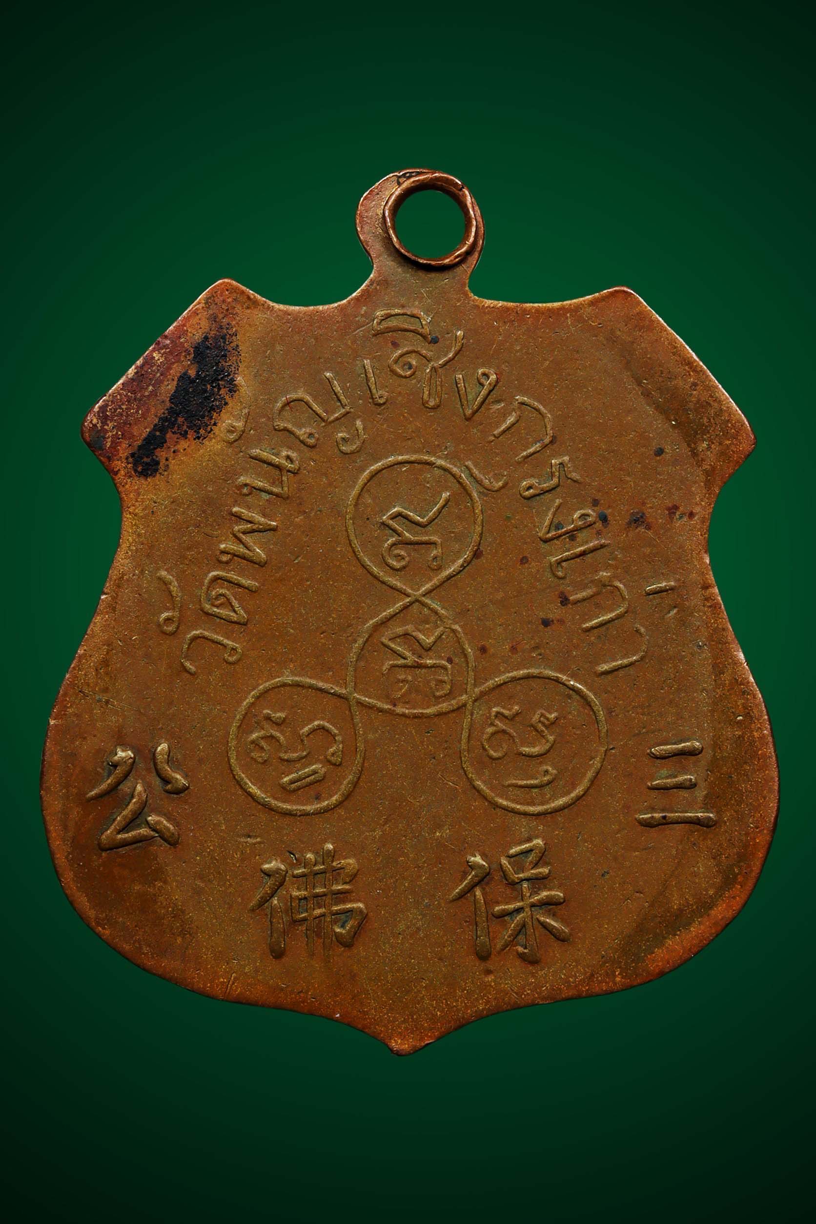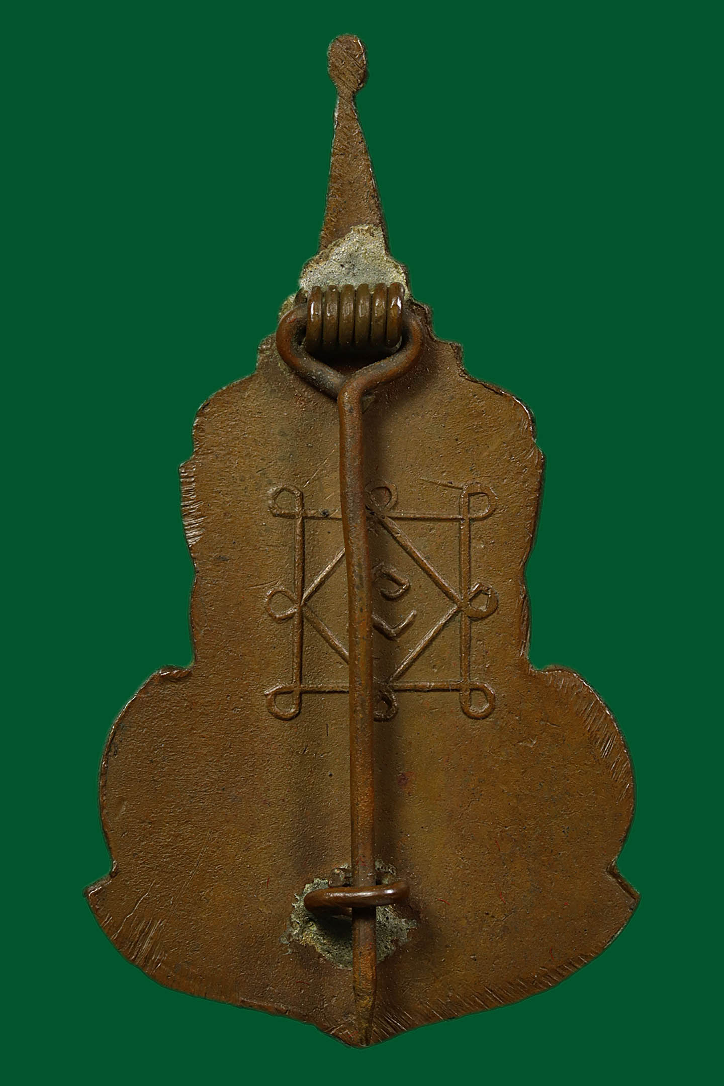 เข็มกลัดหลวงพ่อเพชร วัดท่าถนน พิมพ์กนกใน ปี 2483 เนื้อทองแดง จังหวัดอุตรดิตถ์ (KA0545)