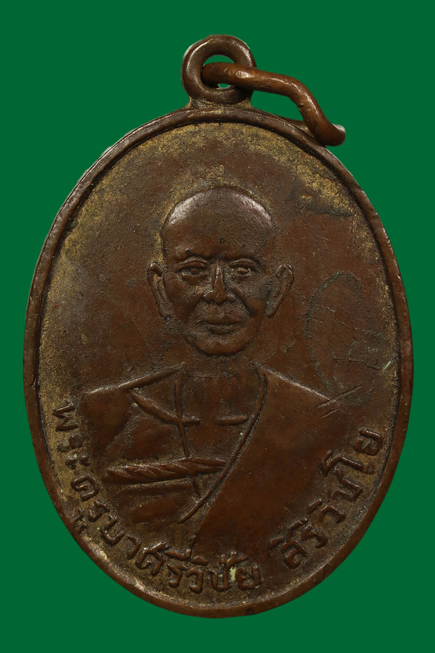 หลวงพ่อรุ่ง วัดท่ากระบือ รุ่นพัดยศ ปี 2500 เนื้อทองแดง จังหวัดสมุทรสาคร (KA0503)