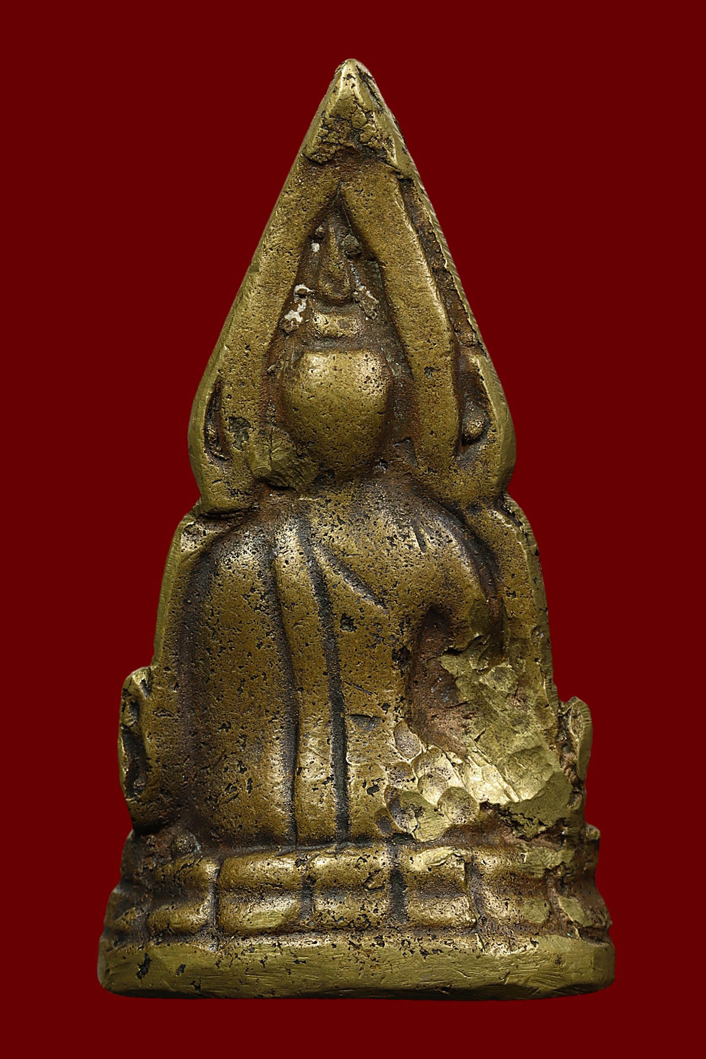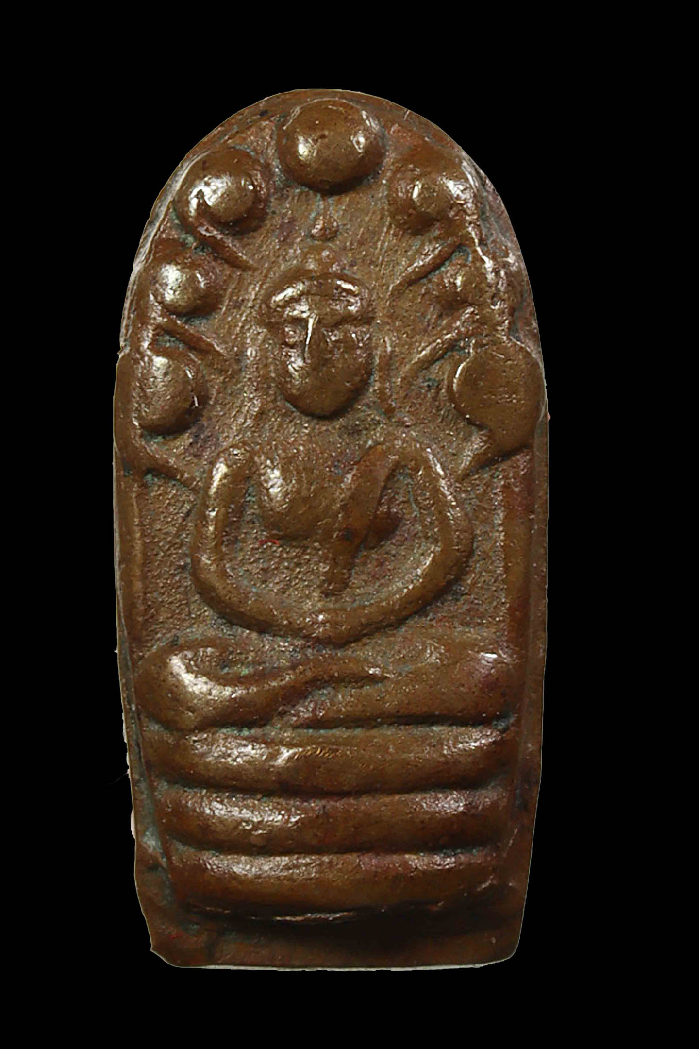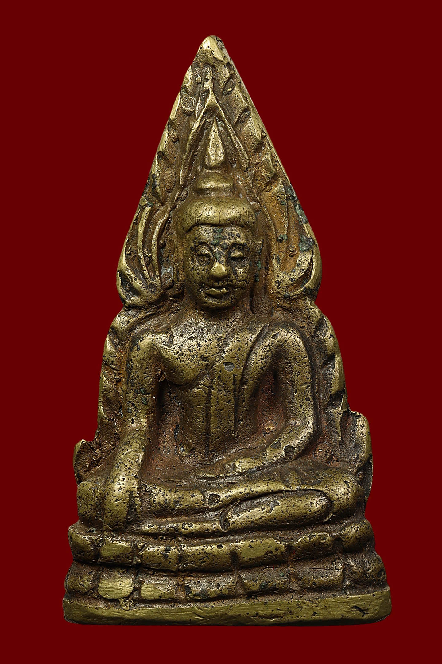 พระนาคปรกใบมะขามพุฒาจารย์นวม วัดอนงคาราม รุ่นแรก พิมพ์ฐาน 2 ชั้น ปี 2463 เนื้อทองแดงกะไหล่ทอง จังหวัดกรุงเทพมหานคร (KA0605)