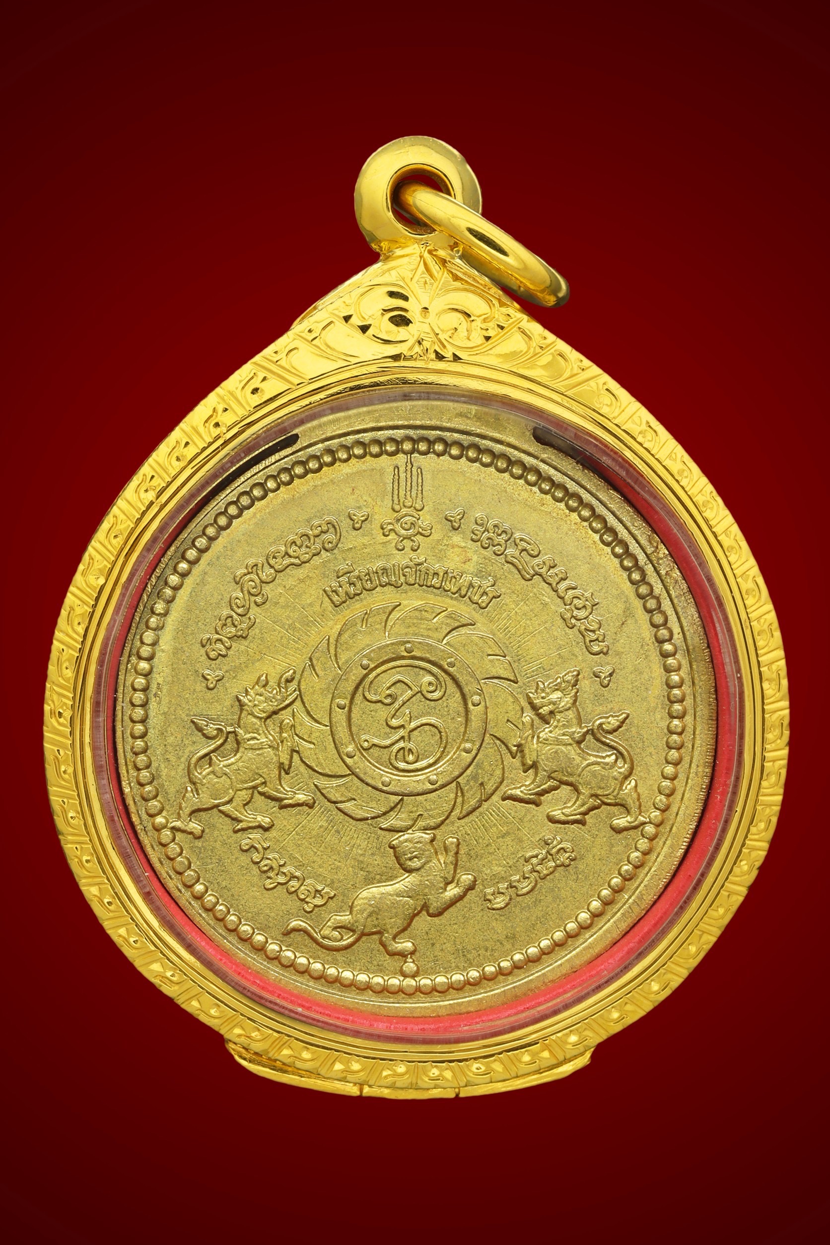 เหรียญพัดยศ หลวงพ่อรุ่ง วัดท่ากระบือ ปี 2500 เนื้อทองแดงกะไหล่ทอง จังหวัดสมุทรสาคร