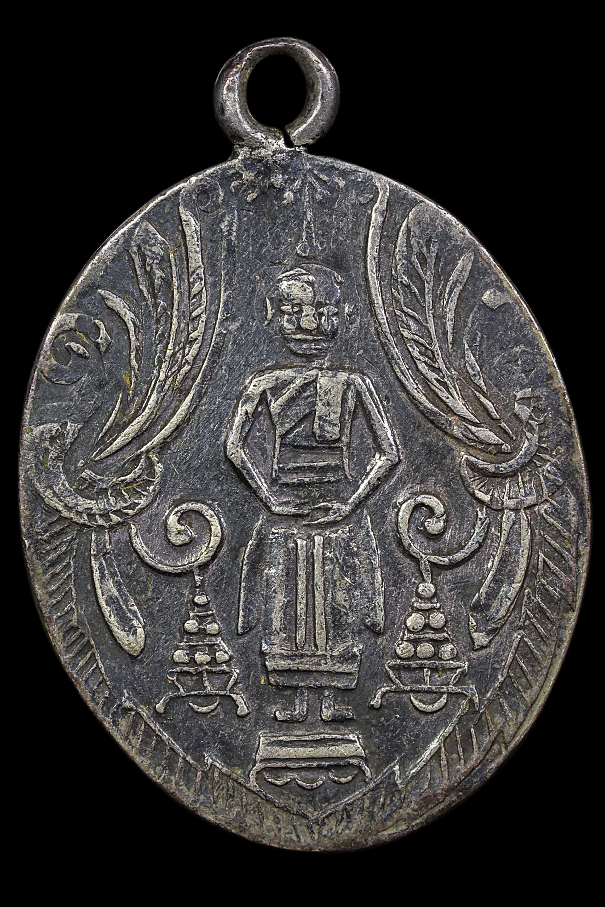 เหรียญหล่อหลวงพ่อไปล่ วัดกำแพง รุ่นแรก พิมพ์รูปไข่ ปี 2478 เนื้อโลหะผสม จังหวัดกรุงเทพฯ