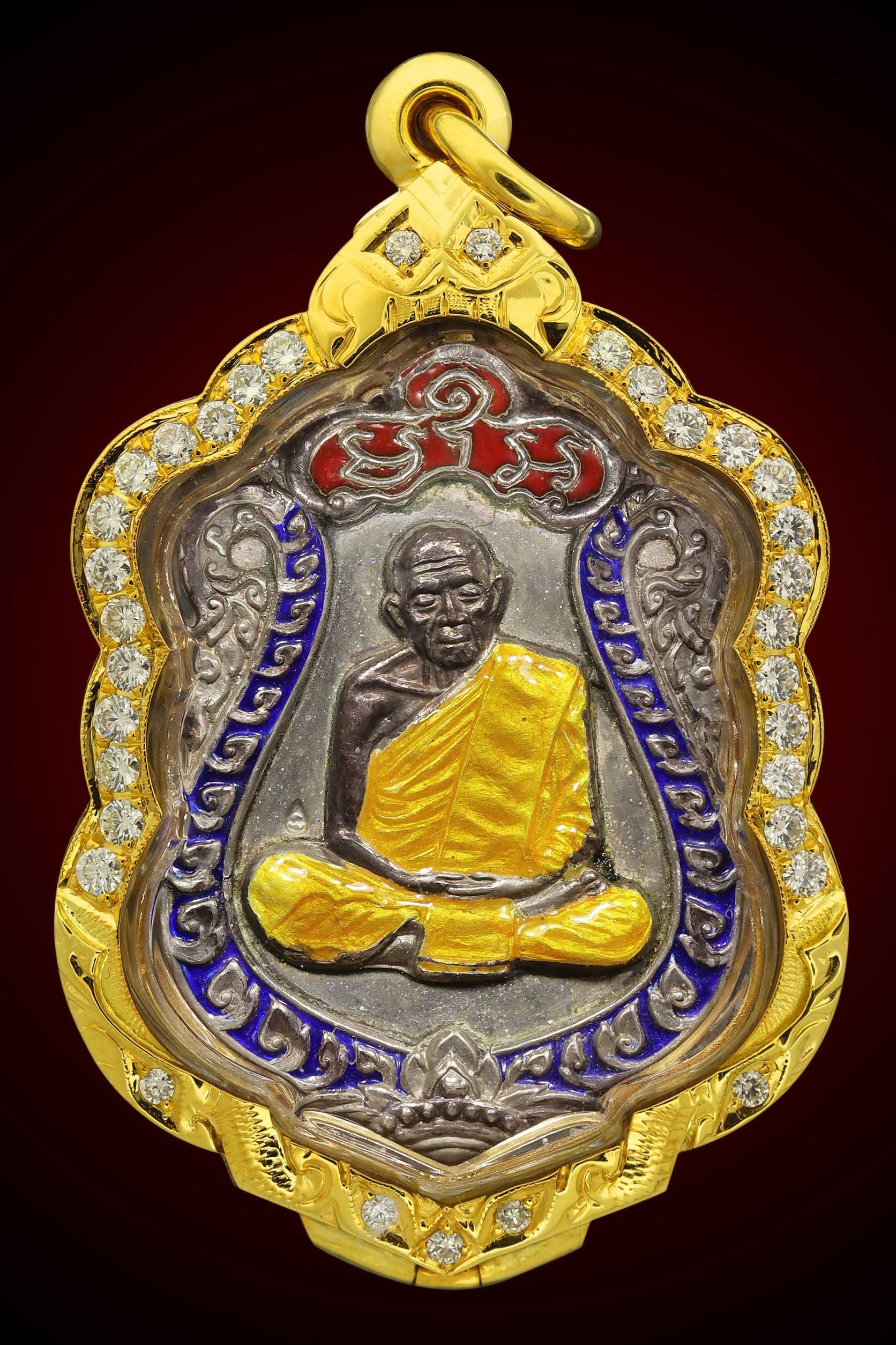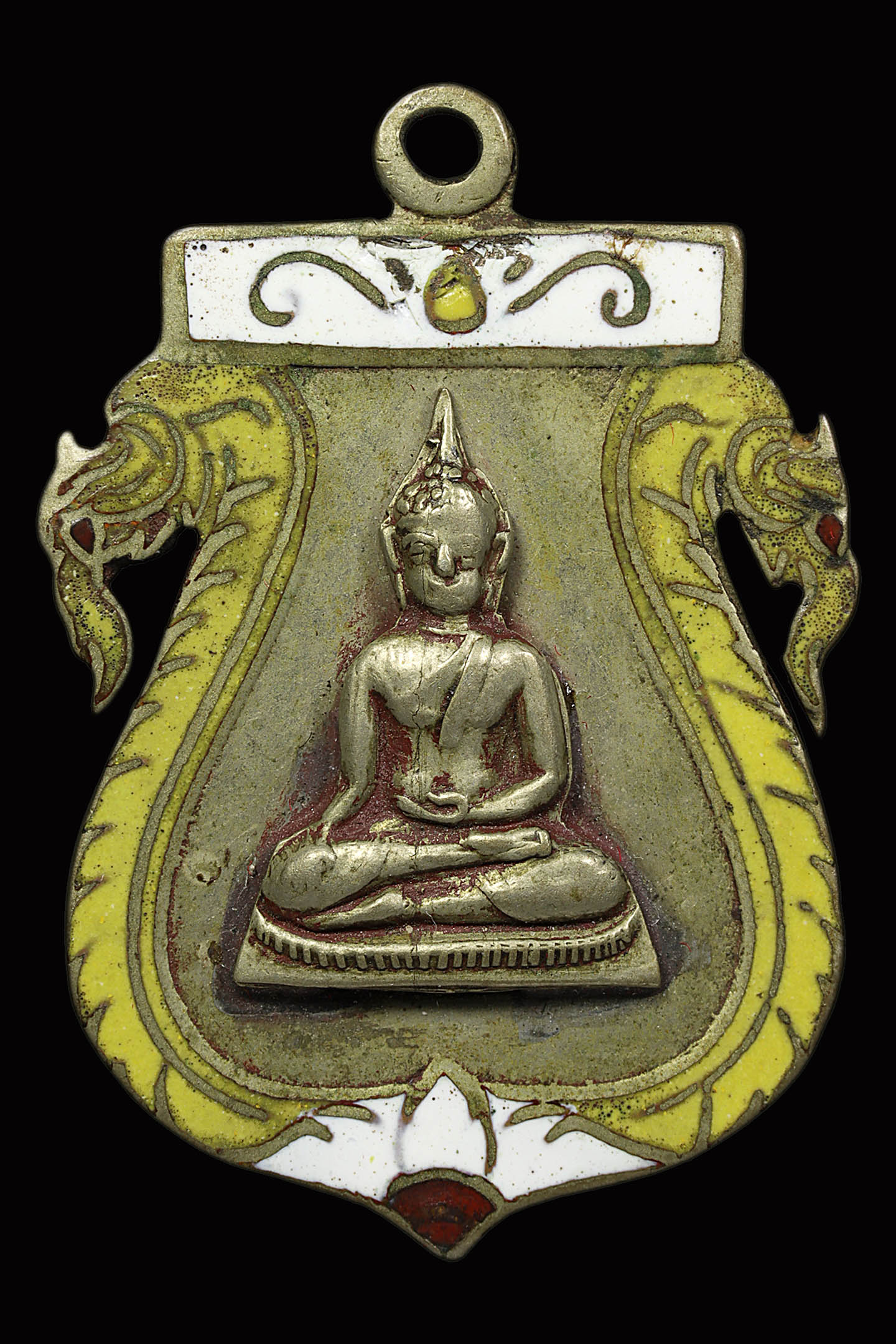 เหรียญฉลุหลวงพ่อวัดไร่ขิง ปี 2509 เนื้ออัลปาก้าลงยา จังหวัดนครปฐม (KA0511)