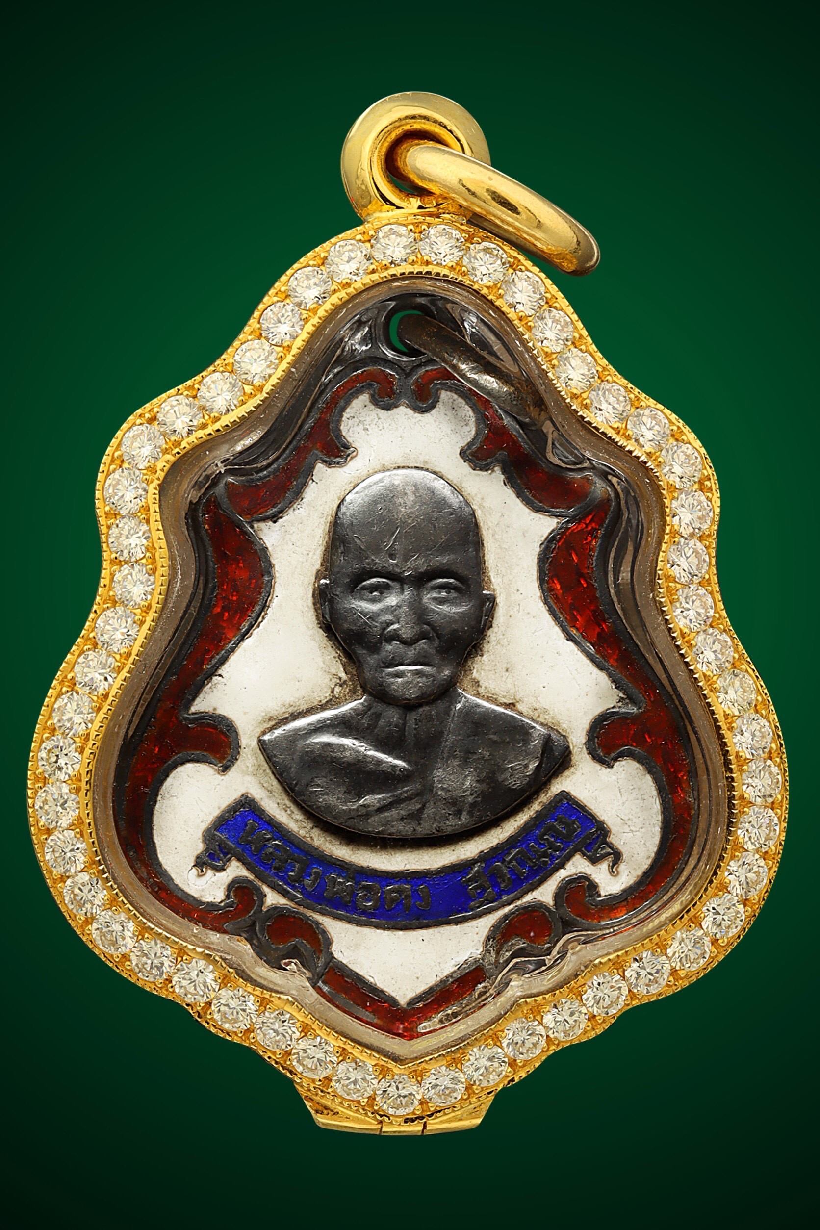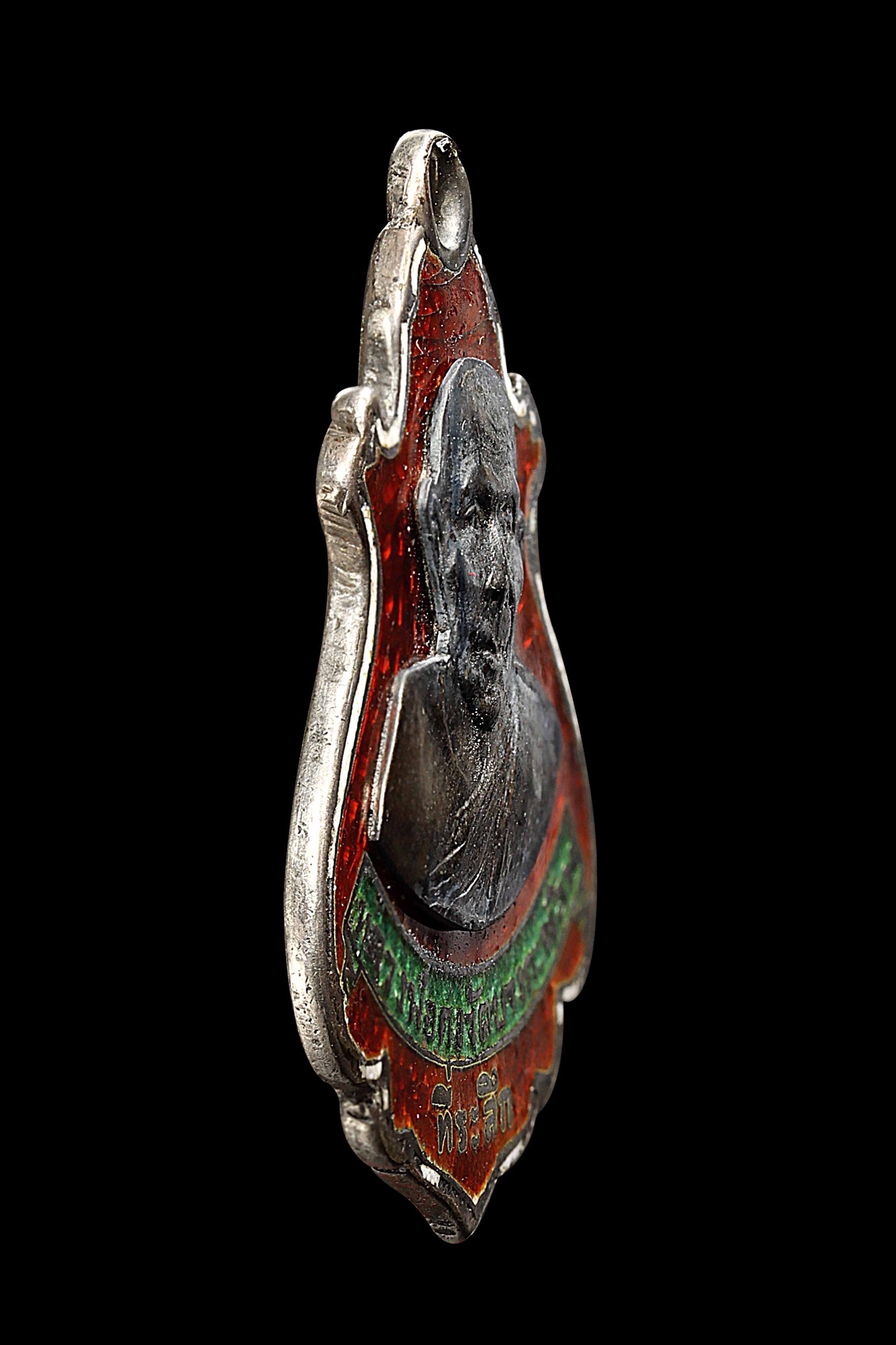 เหรียญหลวงพ่อคง วัดบางกะพ้อม รุ่นปาดตาล ปี 2486 เนื้อเงินลงยา จังหวัดสมุทรสงคราม