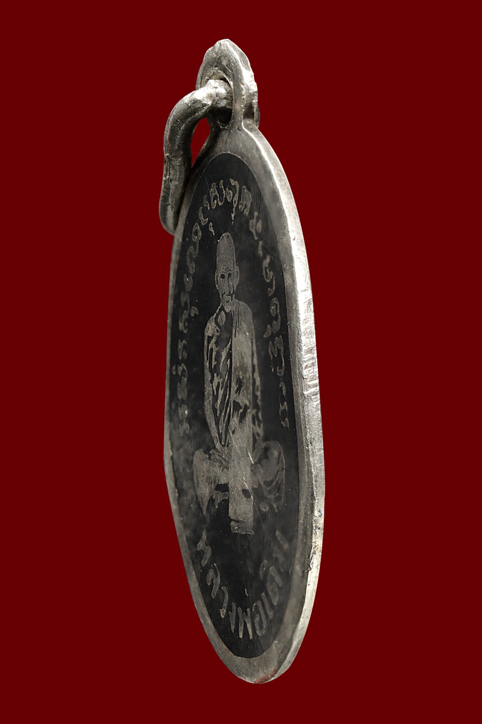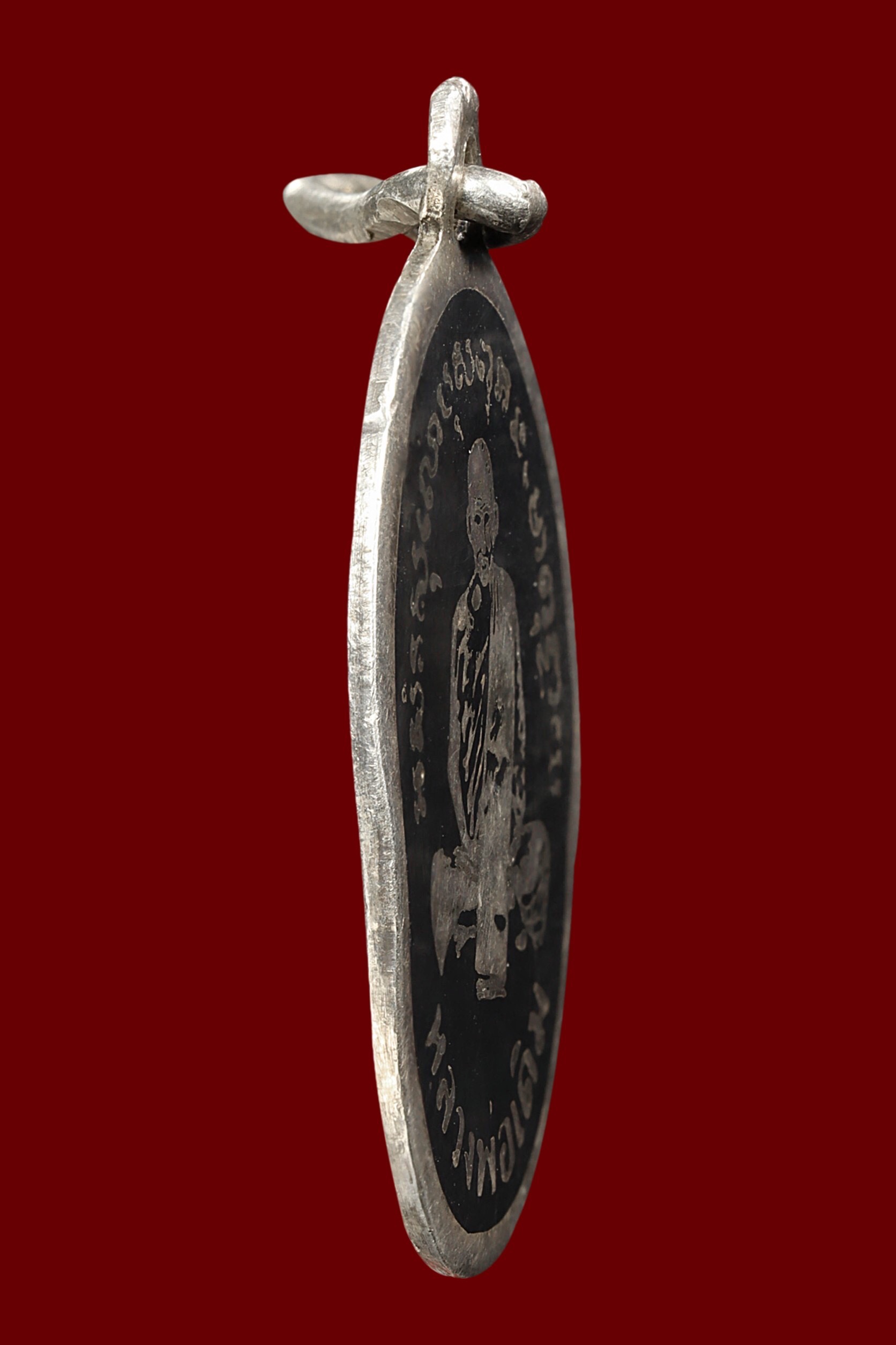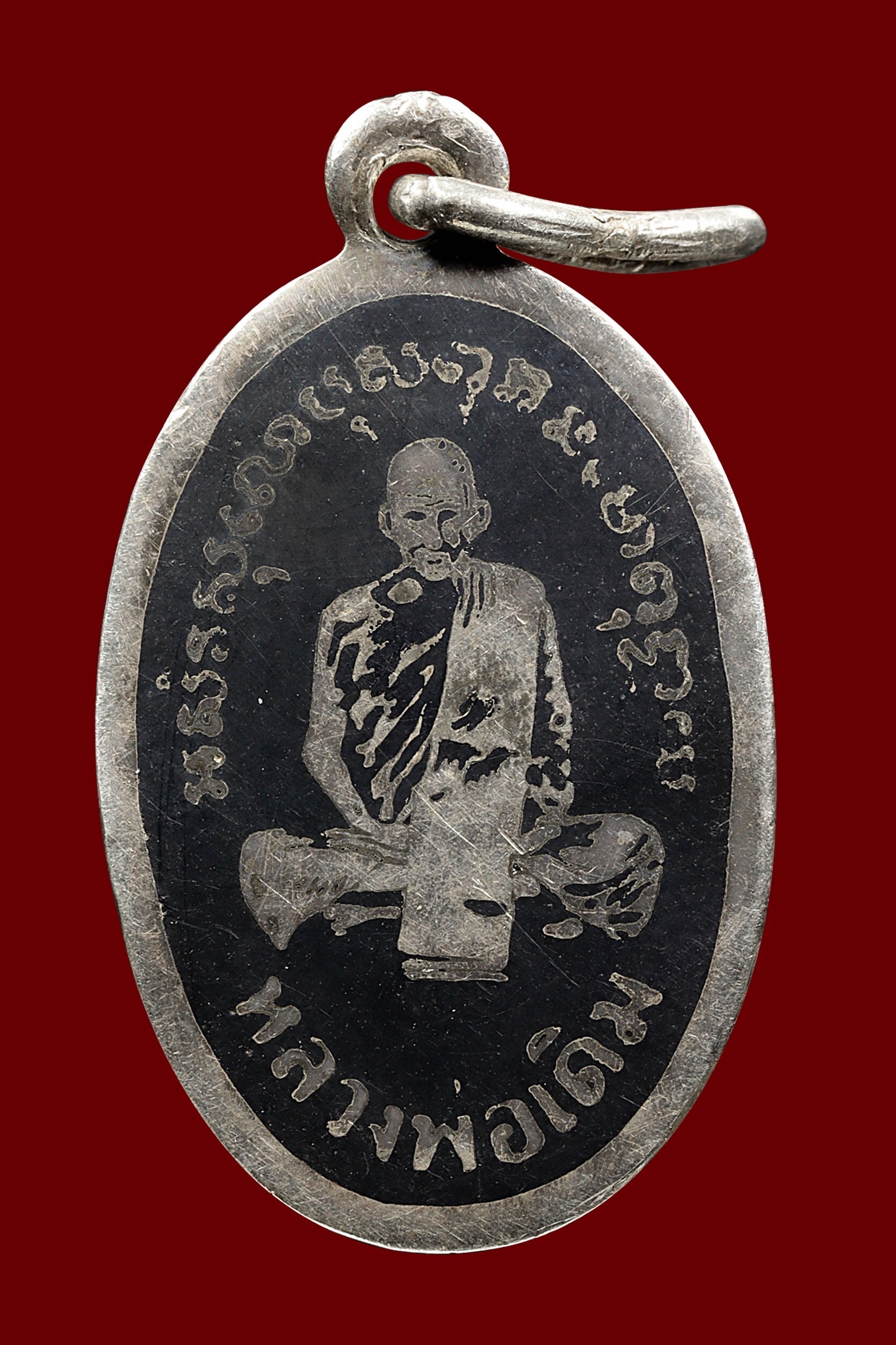 เหรียญรูปไข่หลวงพ่อเดิม วัดหนองโพ ปี 2485 เนื้อเงินลงถม จังหวัดนครสวรรค์