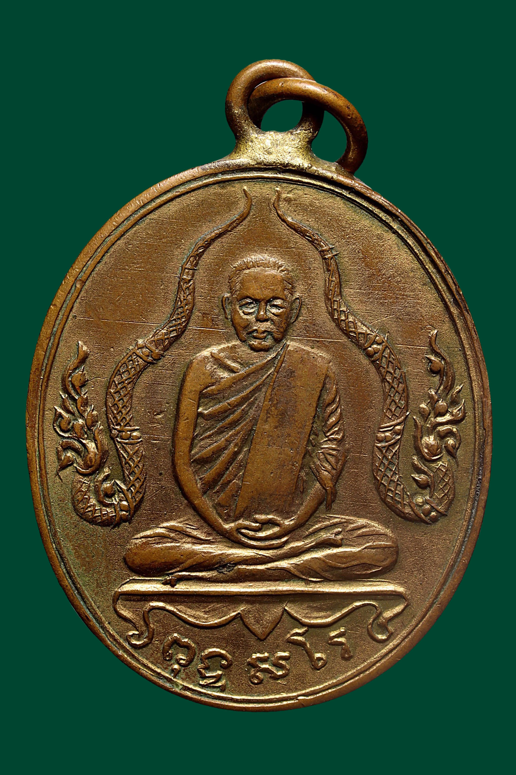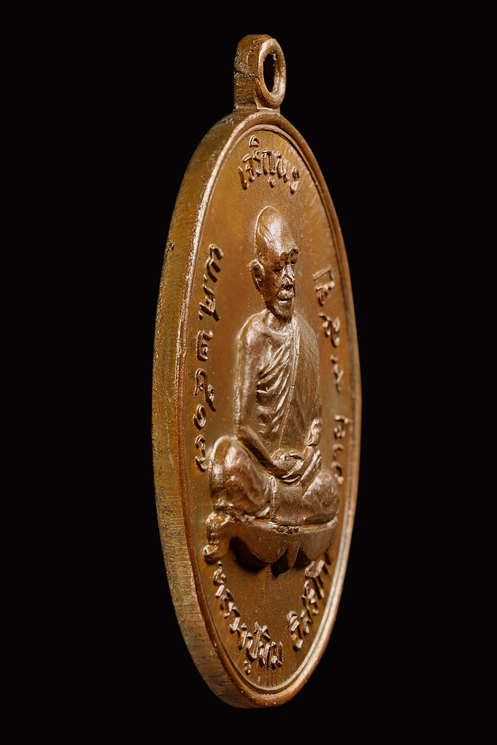 เหรียญหลวงพ่อแดง วัดเขาบันไดอิฐ รุ่นแรก ปี 2503 เนื้อทองแดงรมดำ จังหวัดเพชรบุรี