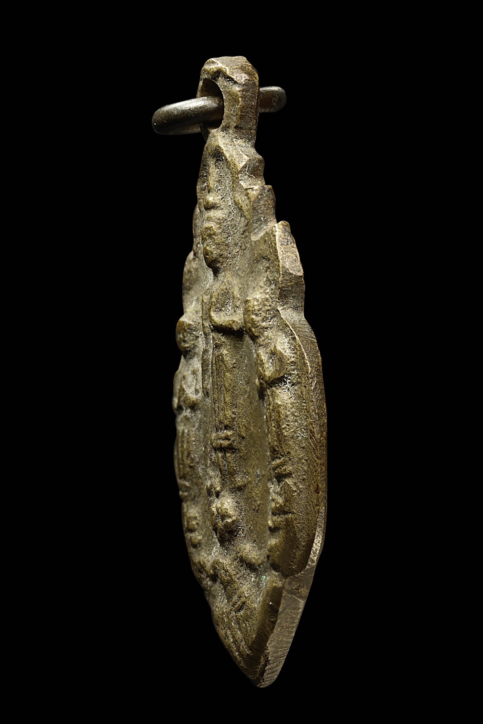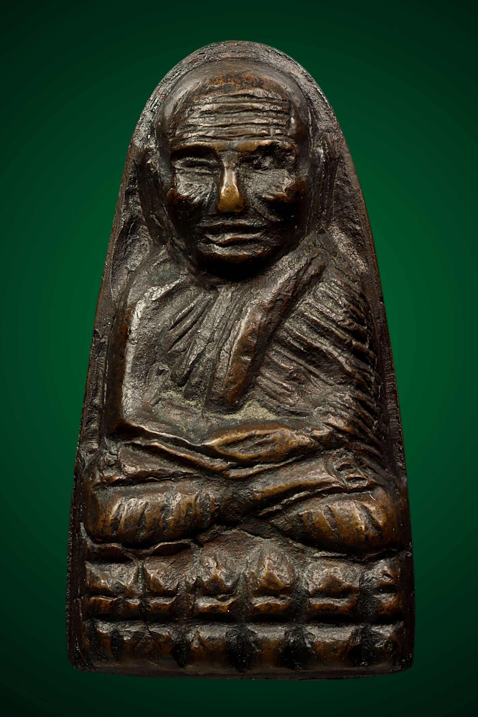 หลวงปู่ทวด วัดช้างให้ รุ่นหลังเตารีด พิมพ์กลางปั้มซ้ำหน้าใหญ่ ปี 2505 เนื้อโลหะผสม จังหวัดปัตตานี