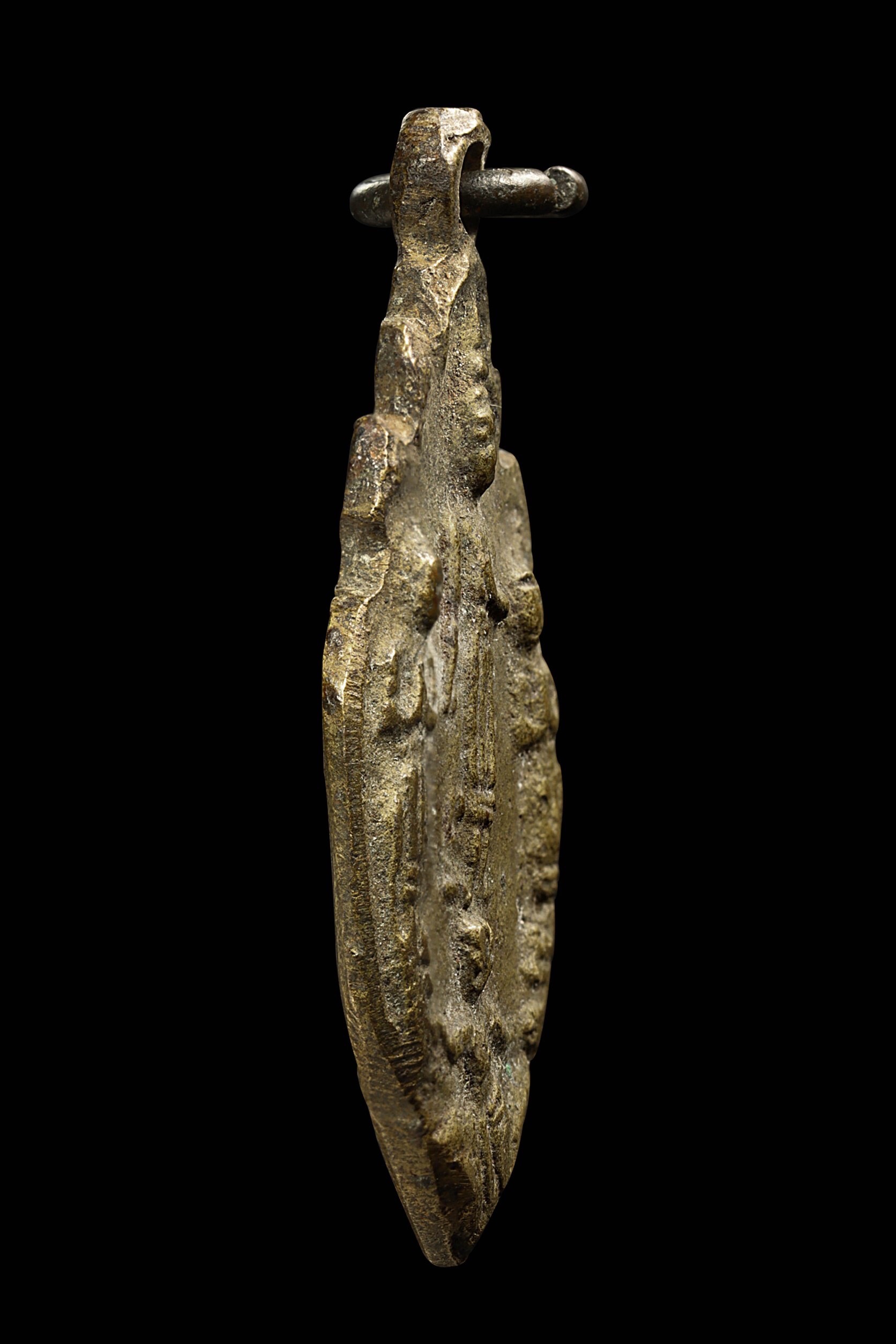 เหรียญหล่อหลวงพ่อคง วัดบางกะพ้อม รุ่นแรก พิมพ์หนุมานแบกพระโมคคัลลา-สาริบุตร ปี 2460 เนื้อโลหะผสม จ.สมุทรสงคราม