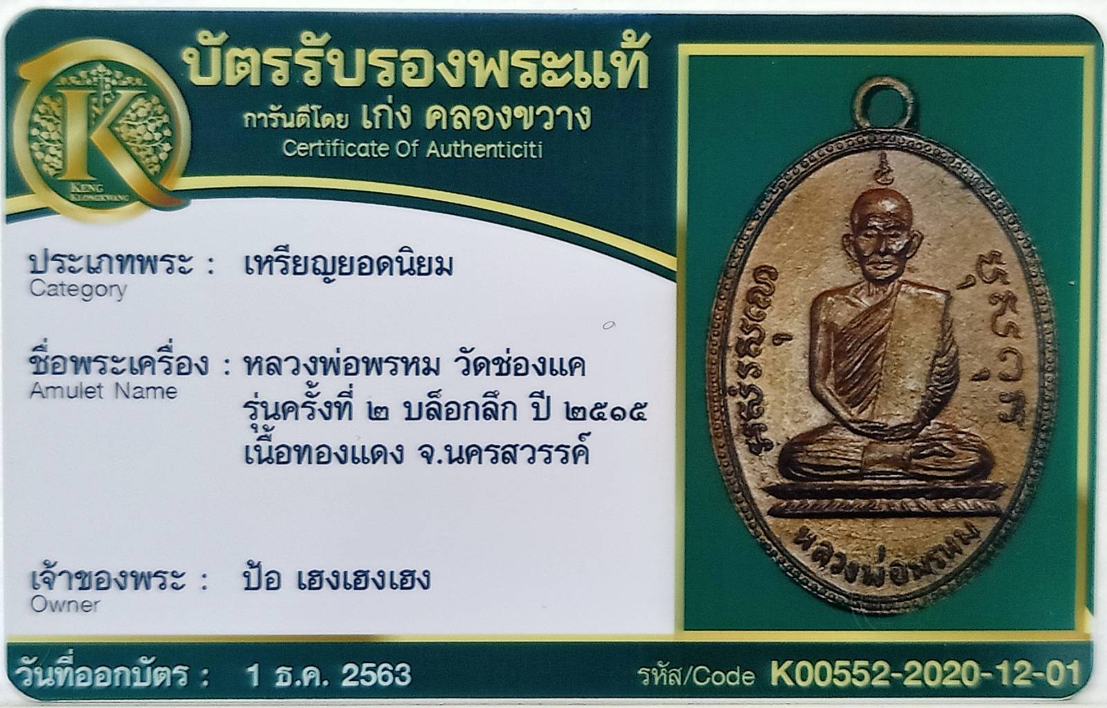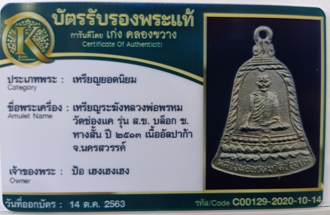 เหรียญระฆังหลวงพ่อพรหม วัดช่องแค
