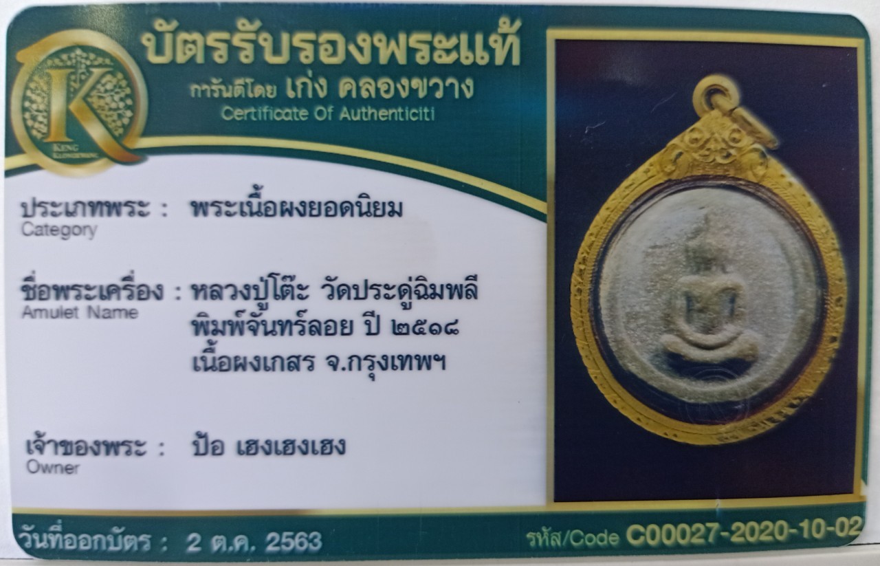หลวงปู่โต๊ะ วัดประดู่ฉิมพลี พิมจันร์ลอย