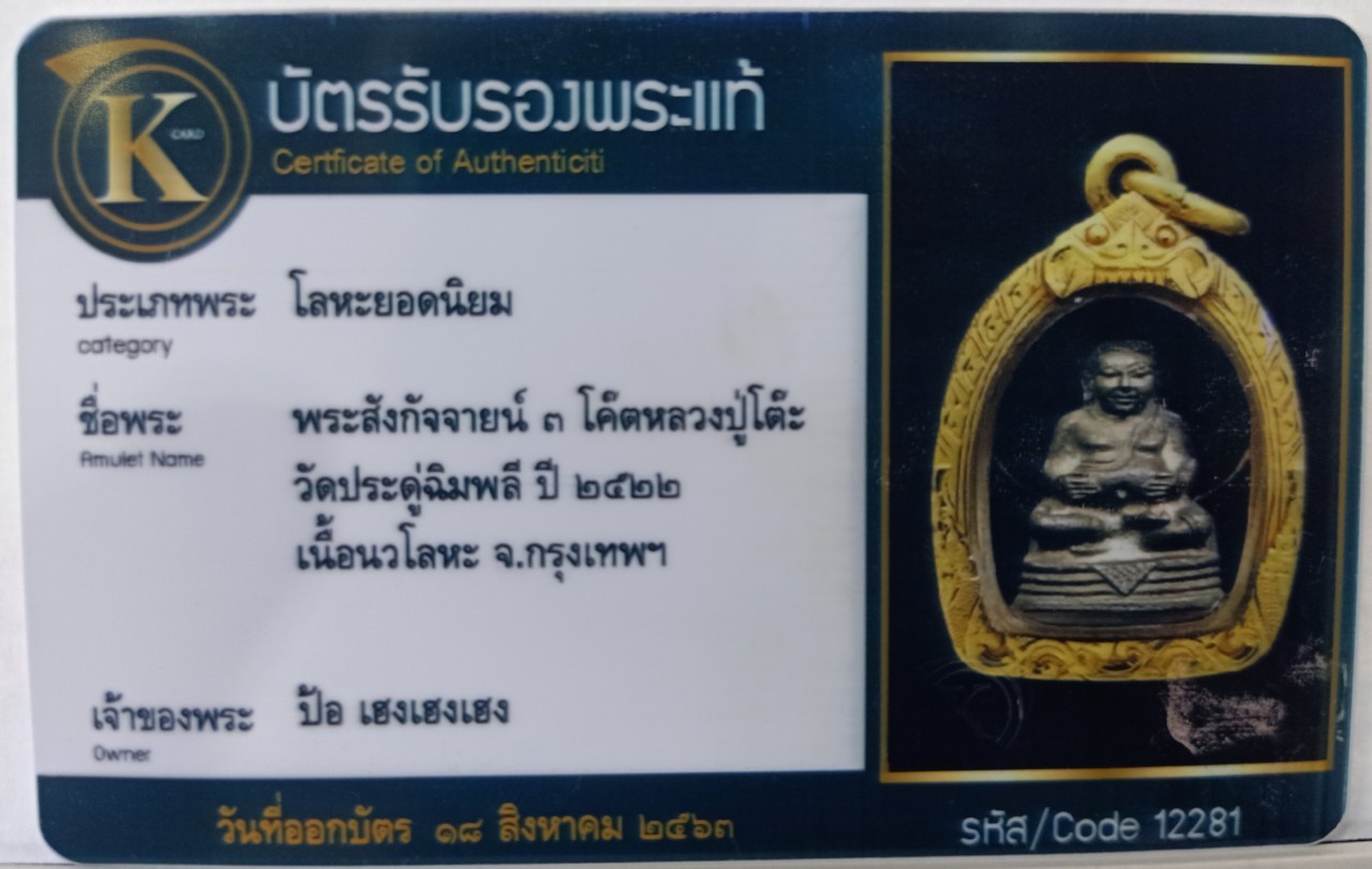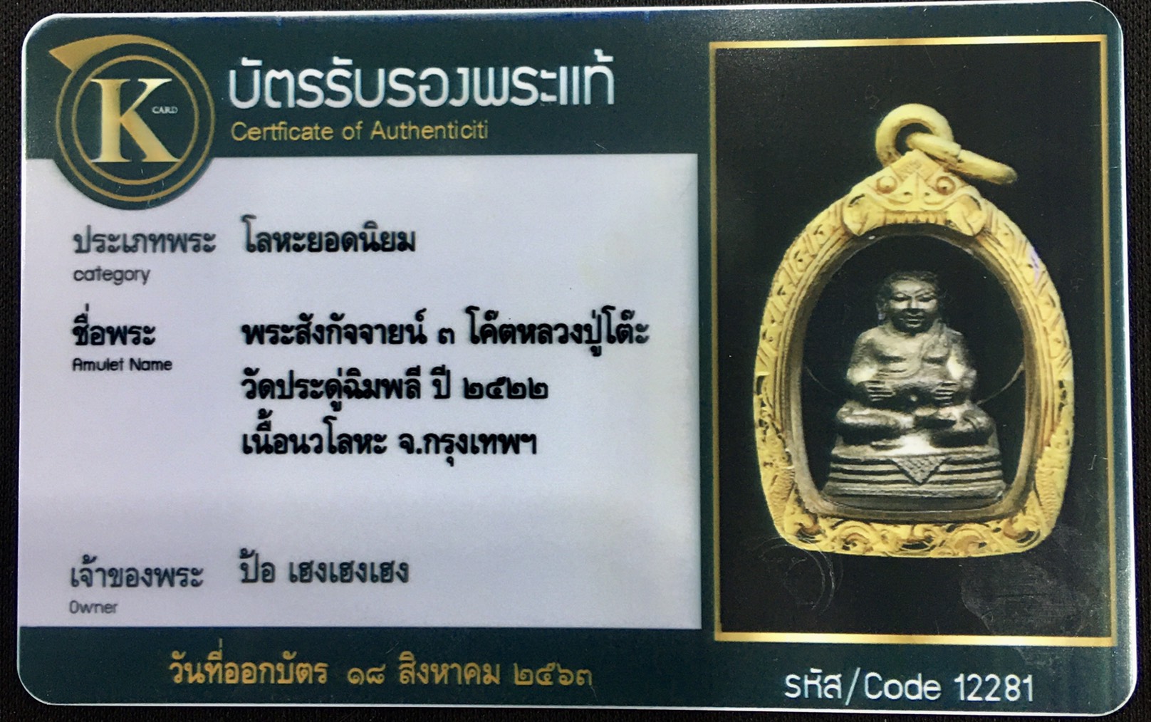 พระสังกัจจายน์ ๓ โค๊ตหลวงปู่โต๊ะ