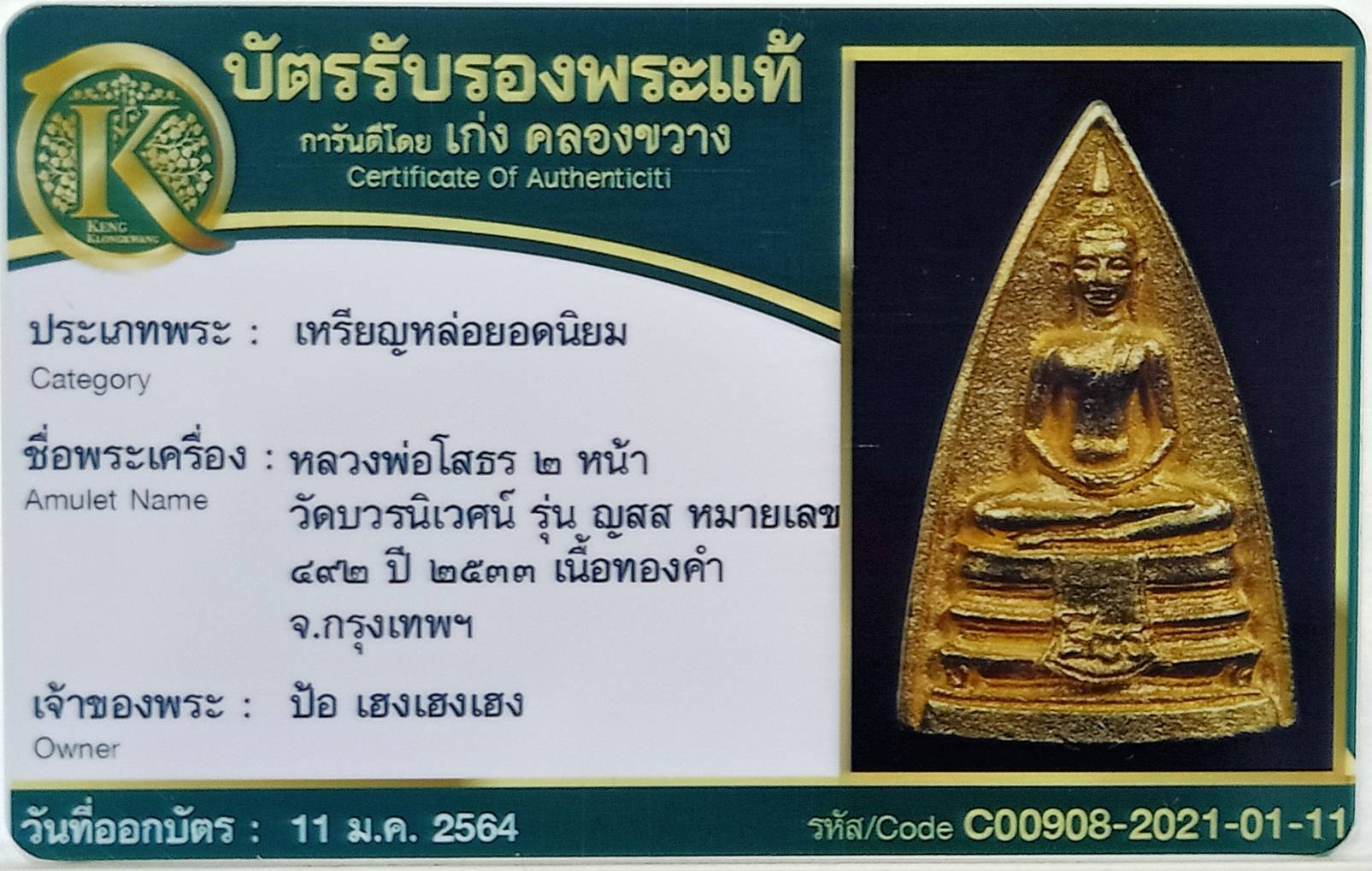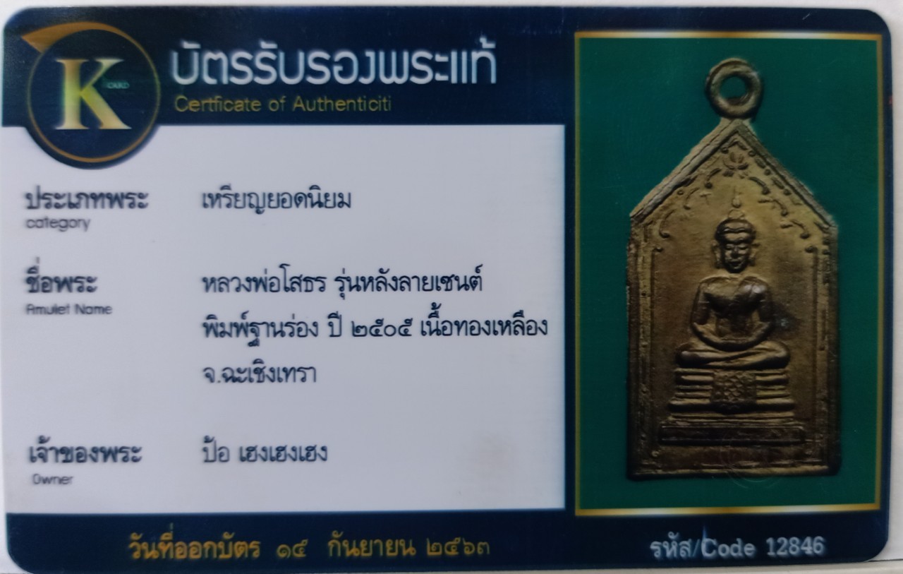 หลวงพ่อโสธร รุ่นหลังลายเซนต์