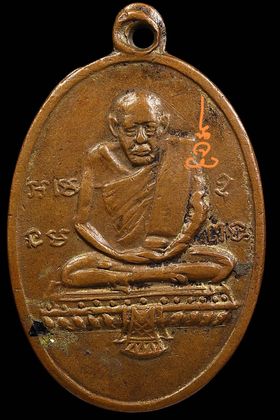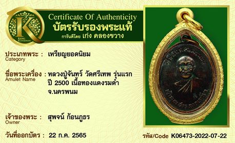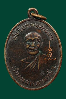 เหรียญหลวงปู่จันทร์ วัดศรีเทพ รุ่นแรก ปี 2500 เนื้อทองแดงรมดำ จังหวัดนครพนม