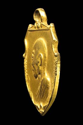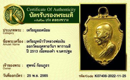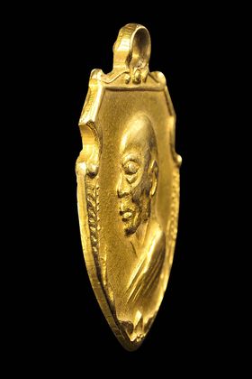 เหรียญหน้าว้ว หลวงพ่อเงิน วัดดอนยายหอม รุ่นออกวัดมฤคทายวันพาราณสี ปี 2513 เนื้อทองคำ จังหวัดนครปฐม