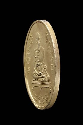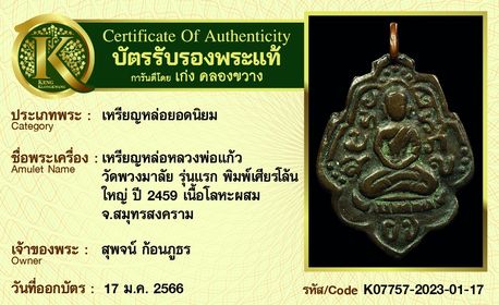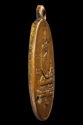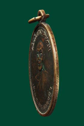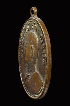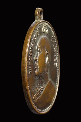 เหรียญหล่อหลวงพ่อแก้ว วัดพวงมาลัย รุ่นแรก พิมพ์เศียรโล้นใหญ่ ปี 2459 เนื้อโลหะผสม จ.สมุทรสงคราม