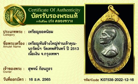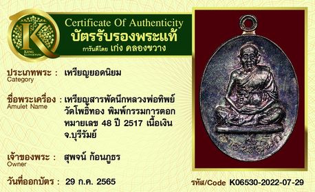 เหรียญสารพัดนึก หลวงพ่อทิพย์ วัดโพธิ์ทอง พิมพ์กรรมการตอก หมายเลข 48 ปี 2517 เนื้อเงิน จ.บุรีรัมย์