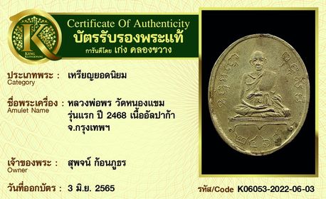 เหรียญหลวงพ่อพร วัดหนองแขม รุ่นแรก ปี 2468 เนื้ออัลปาก้า จังหวัดกรุงเทพฯ