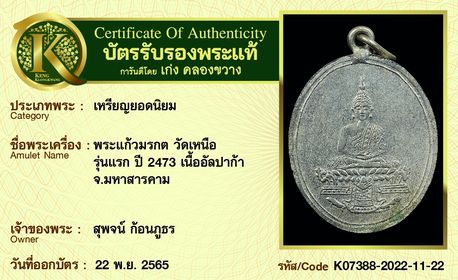 เหรียญพระแก้วมรกต วัดเหนือ รุ่นแรก ปี 2473 เนื้ออัลปาก้า จังหวัดมหาสารคาม