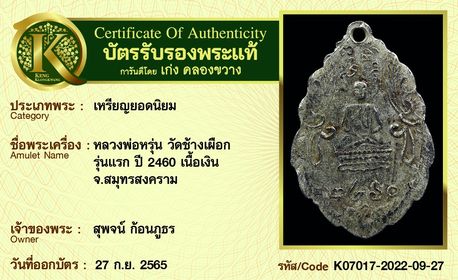 เหรียญหลวงพ่อหรุ่น วัดช้างเผือก รุ่นแรก ปี 2460 เนื้อเงิน จังหวัดสมุทรสาคร