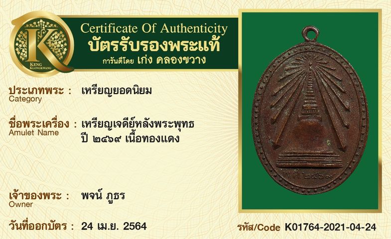 เหรียญเจดีย์หลังพระพุทธ ปี 2469 เนื้อทองแดง