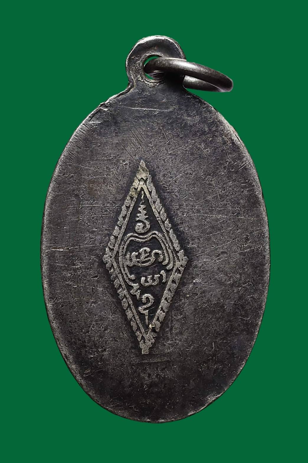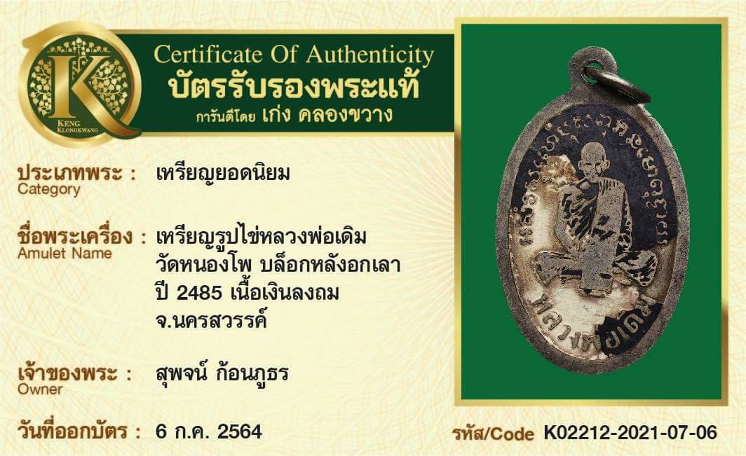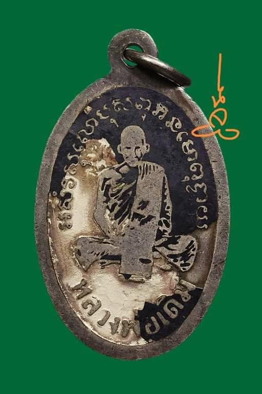 เหรียญรูปไข่หลวงพ่อเดิม วัดหนองโพ บล็อกหลังอกเลา ปี 2485 เนื้อเงินลงถม จังหวัดนครสวรรค์