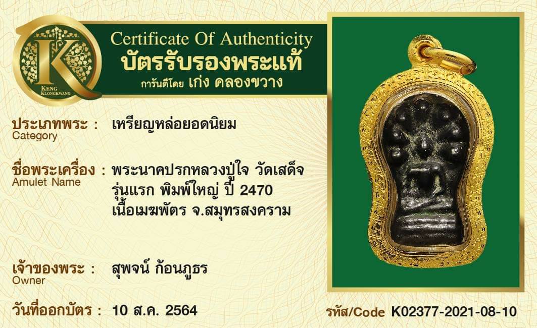 พระนาคปรกหลวงปู่ใจ วัดเสด็จ รุ่นแรก พิมพ์ใหญ่ 2470 เนื้อเมฆพัตร จังหวัดสมุทรสงคราม