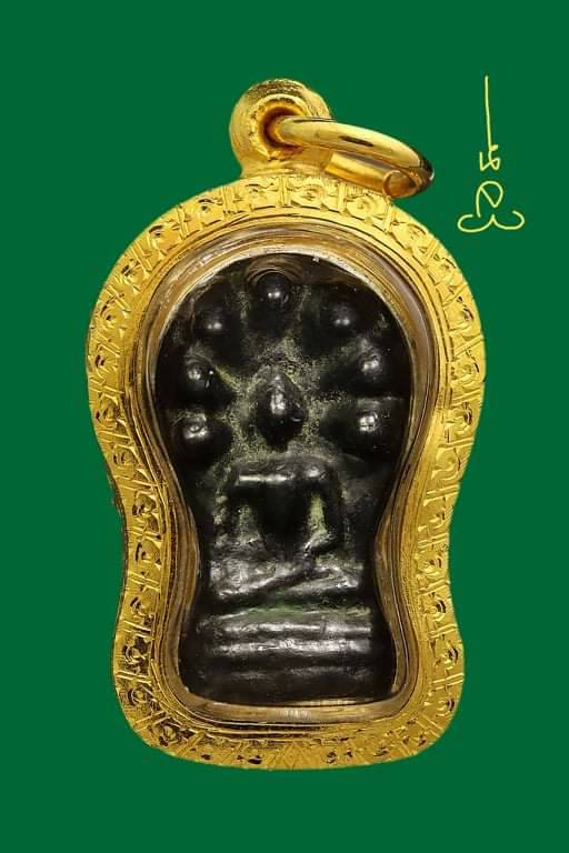 พระนาคปรกใบมะขาม หลวงปู่ใจ วัดเสด็จ รุ่นแรก พิมพ์เล็ก ปี 2470 เนื้อเมฆพัตร จังหวัดสมุทรสงคราม