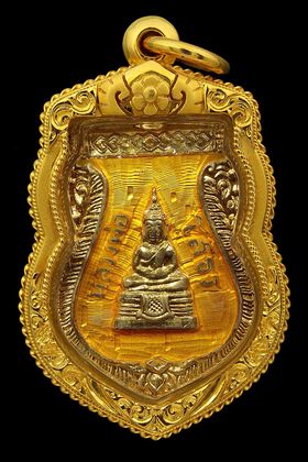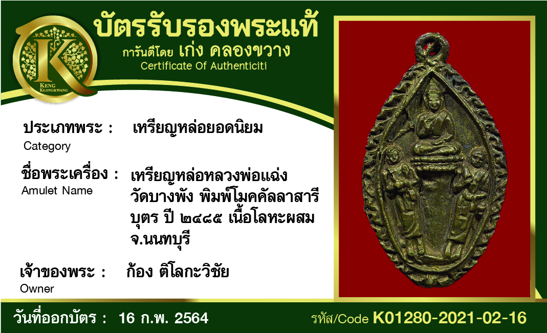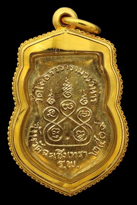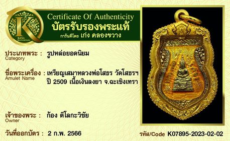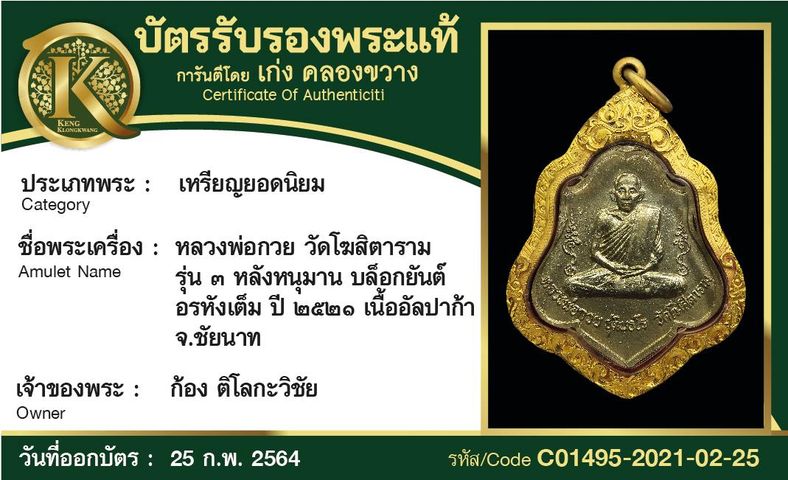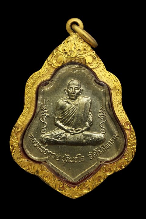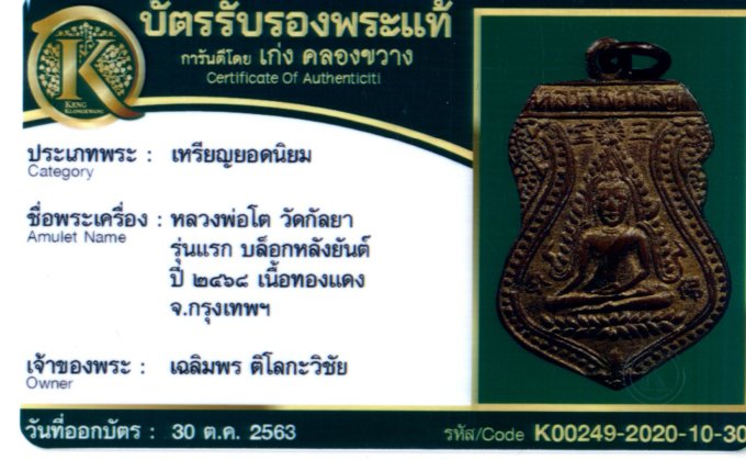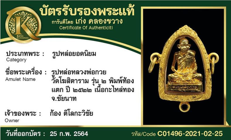 รูปหล่อหลวงพ่อกวย วัดโฆสิตาราม รุ่น 2 พิมพ์ท้องแตก ปี 2522 เนื้อกะไหล่ทอง