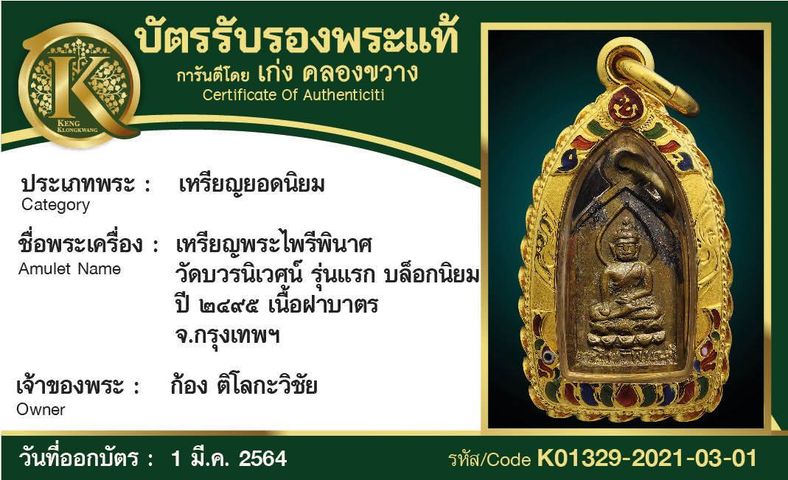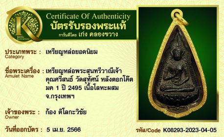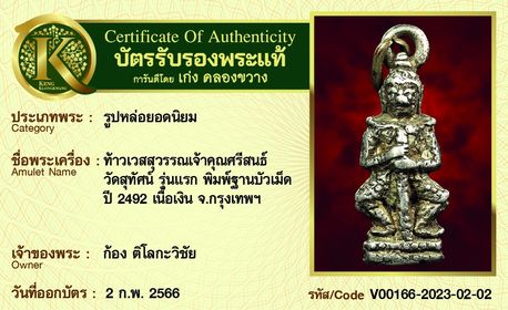 ท้าวเวสสุวรรณเจ้าคุณศรีสนธ์ วัดสุทัศน์ รุ่นแรก พิมพ์ฐานบัวเม็ด ปี 2492 เนื้อเงิน จ.กรุงเทพฯ