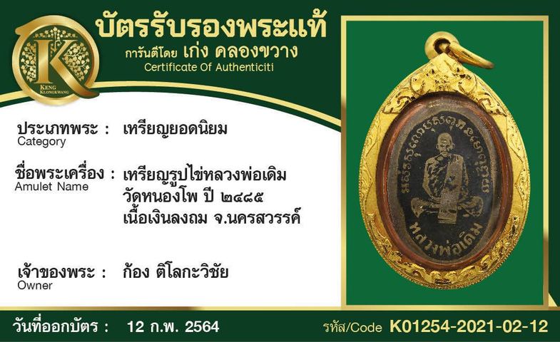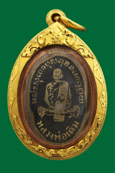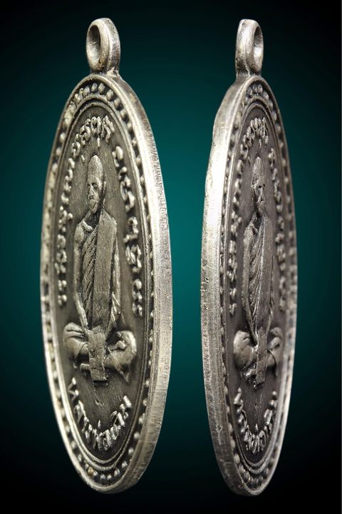 เหรียญรูปไข่หลวงพ่อเดิม วัดหนองโพ เนื้อเงินลงถม