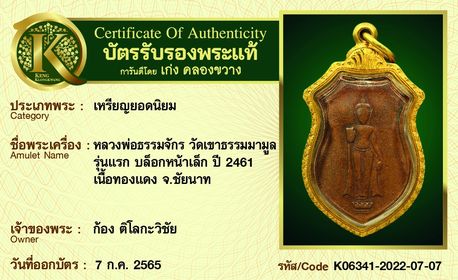 เหรียญหลวงพ่อธรรมจักร วัดเขาธรรมามูล รุ่นแรก ปี 2461 เนื้อตะกั่ว จังหวัดชัยนาท