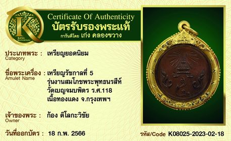 เหรียญรัชกาลที่ 5 รุ่นงานสมโภชพระพุทธนรสีรห์ วัดเบญจมบพิตร ร.ศ.118 เนื้อทองแดง จังหวัดกรุงเทพฯ