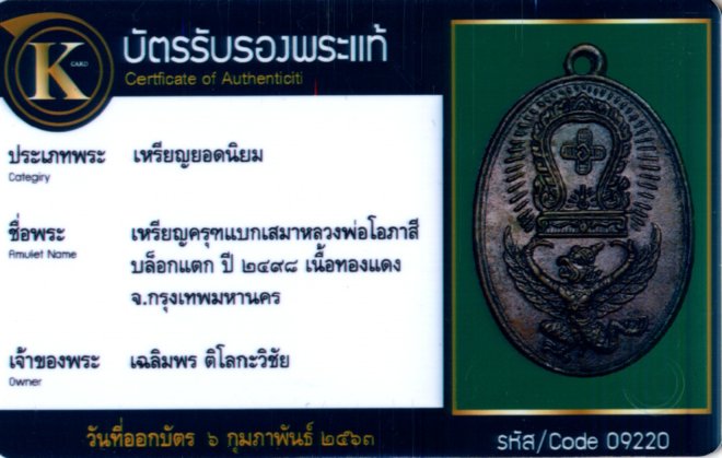 เหรียญครุฑแบกเสมาหลวงพ่อโอภาสี บล็อกเสมาแตก