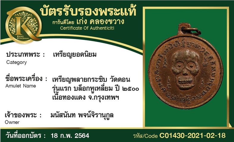 เหรียญพลายกระซิบ วัดดอน รุ่นแรก บล็อกหูเหลี่ยม ปี 2500