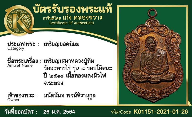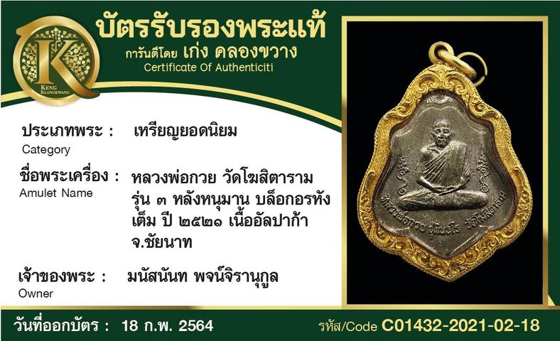 เหรียญหลวงพ่อกวย วัดโฆสิตาราม รุ่น 3 หลังหนุมาน บล็อกยันต์อรหังเต็ม