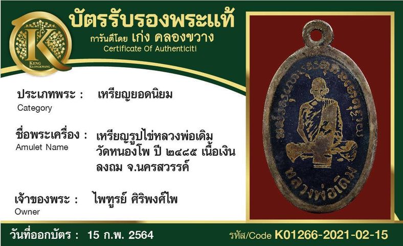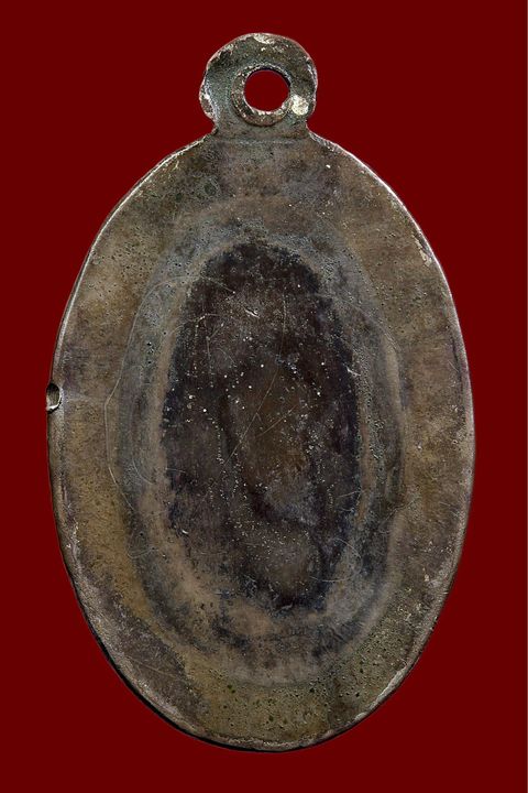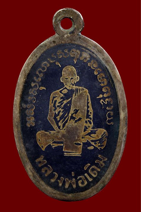 เหรียญรูปไข่หลวงพ่อเดิม วัดหนองโพ เนื้อเงินลงถม ปี 2485