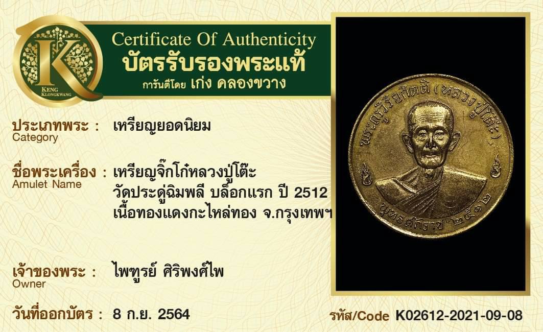 เหรียญจิ๊กโก๋หลวงปู่โต๊ะ วัดประดู่ฉิมพลี บล็อกแรก ปี 2512 เนื้อทองแดงกะไหล่ทอง