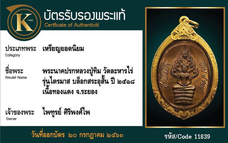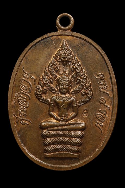 เหรียญพระนาคปรกหลวงปู่ทิม วัดละหารไร่ รุ่นไตรมาส บล็อกสระอุสั้น ปี 2518 เนื้อทองแดง จังหวัดระยอง