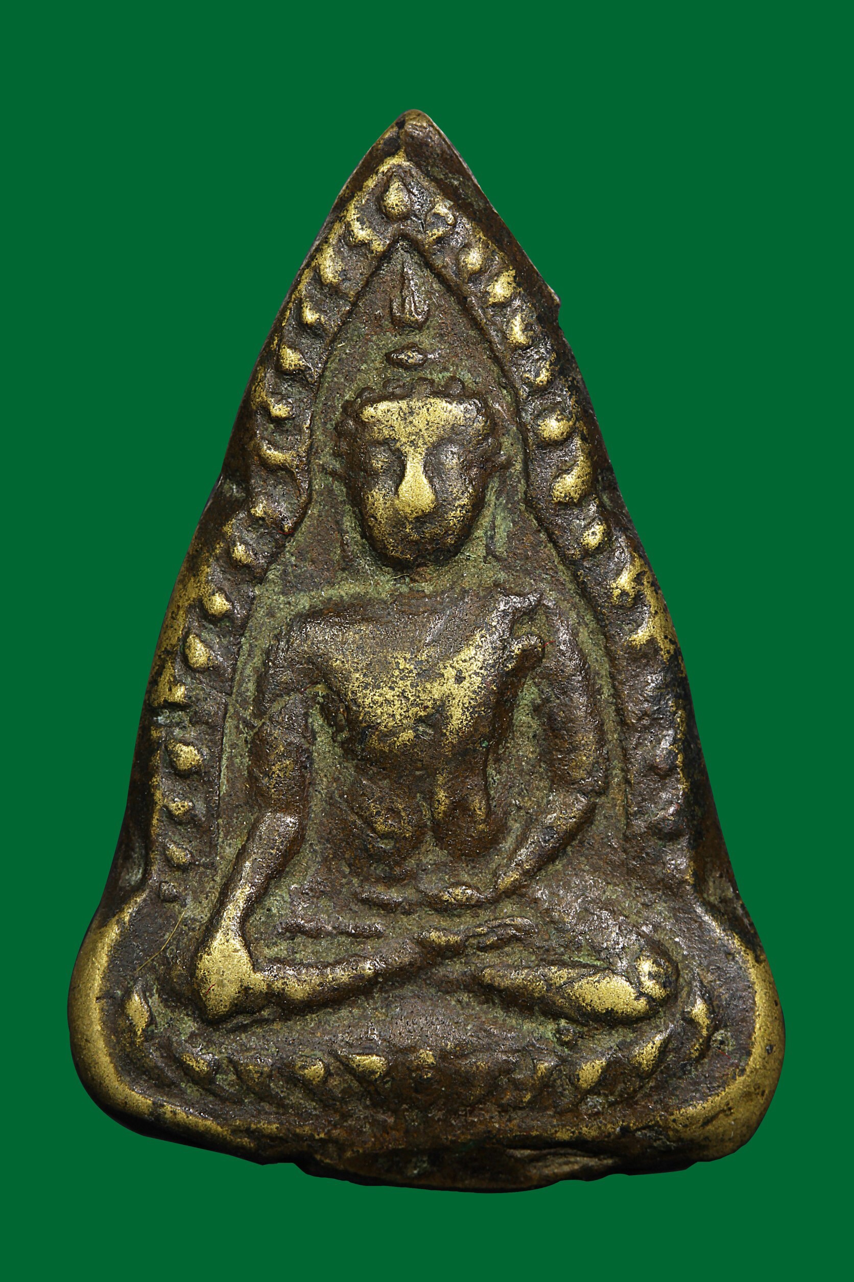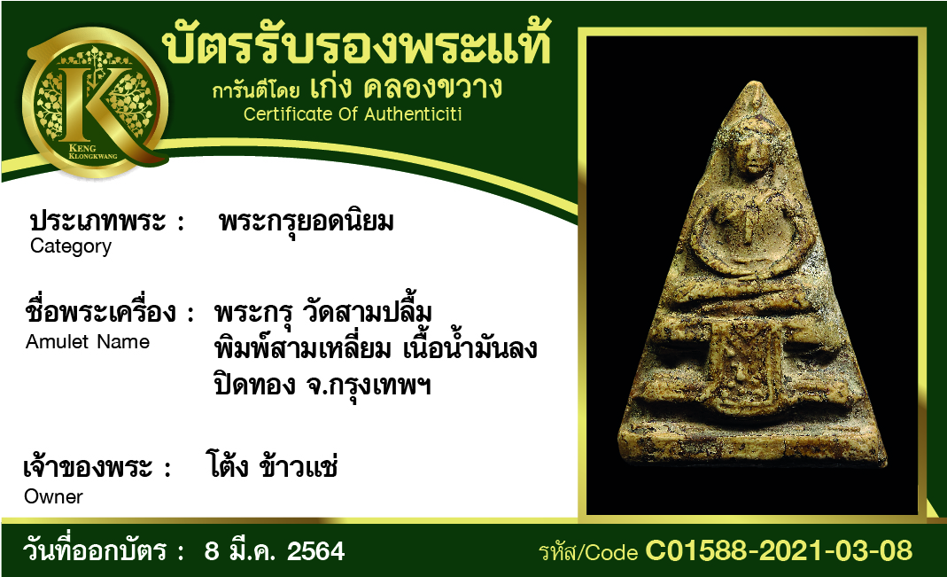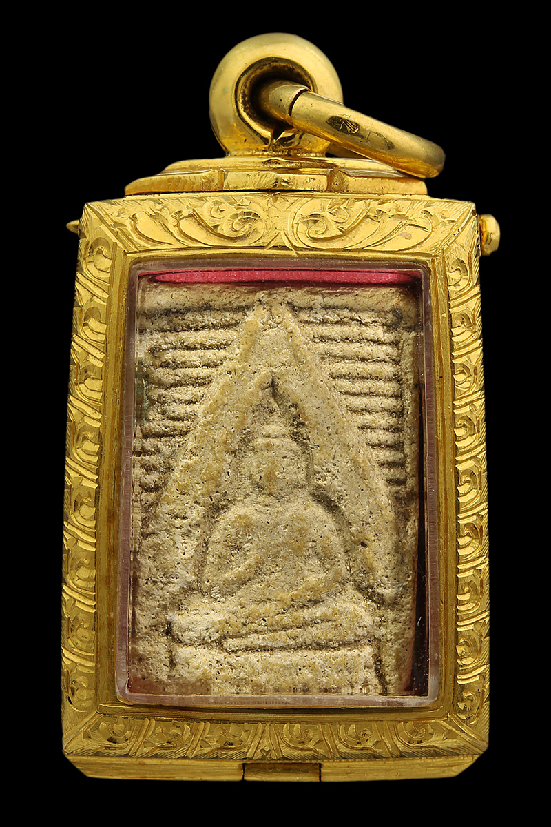 พระกรุ วัดสามปลิ้ม พิมพ์สามเหลี่ยม เนื้อน้ำมันลง ปิดทอง จังหวัดกรุงเทพฯ
