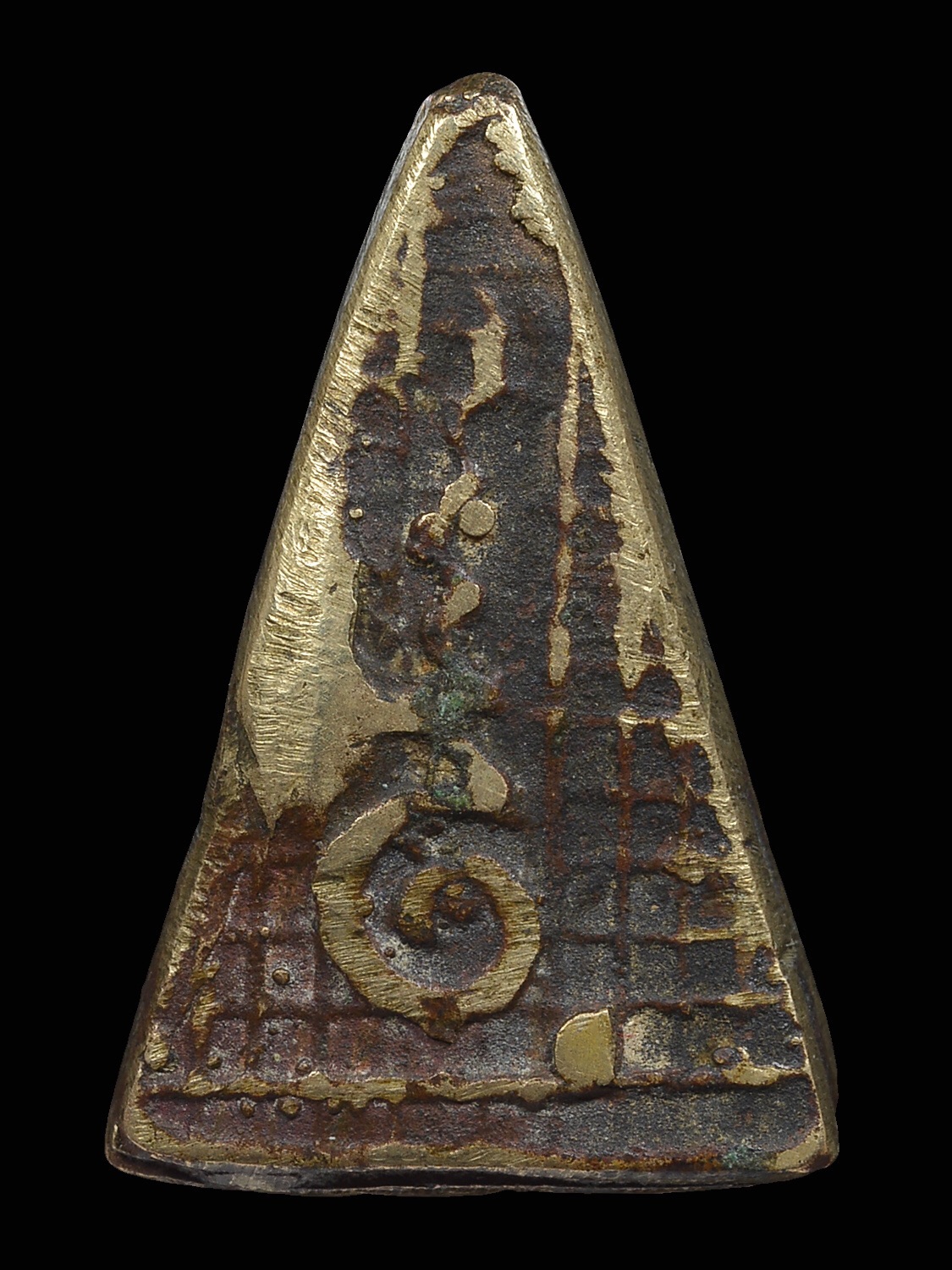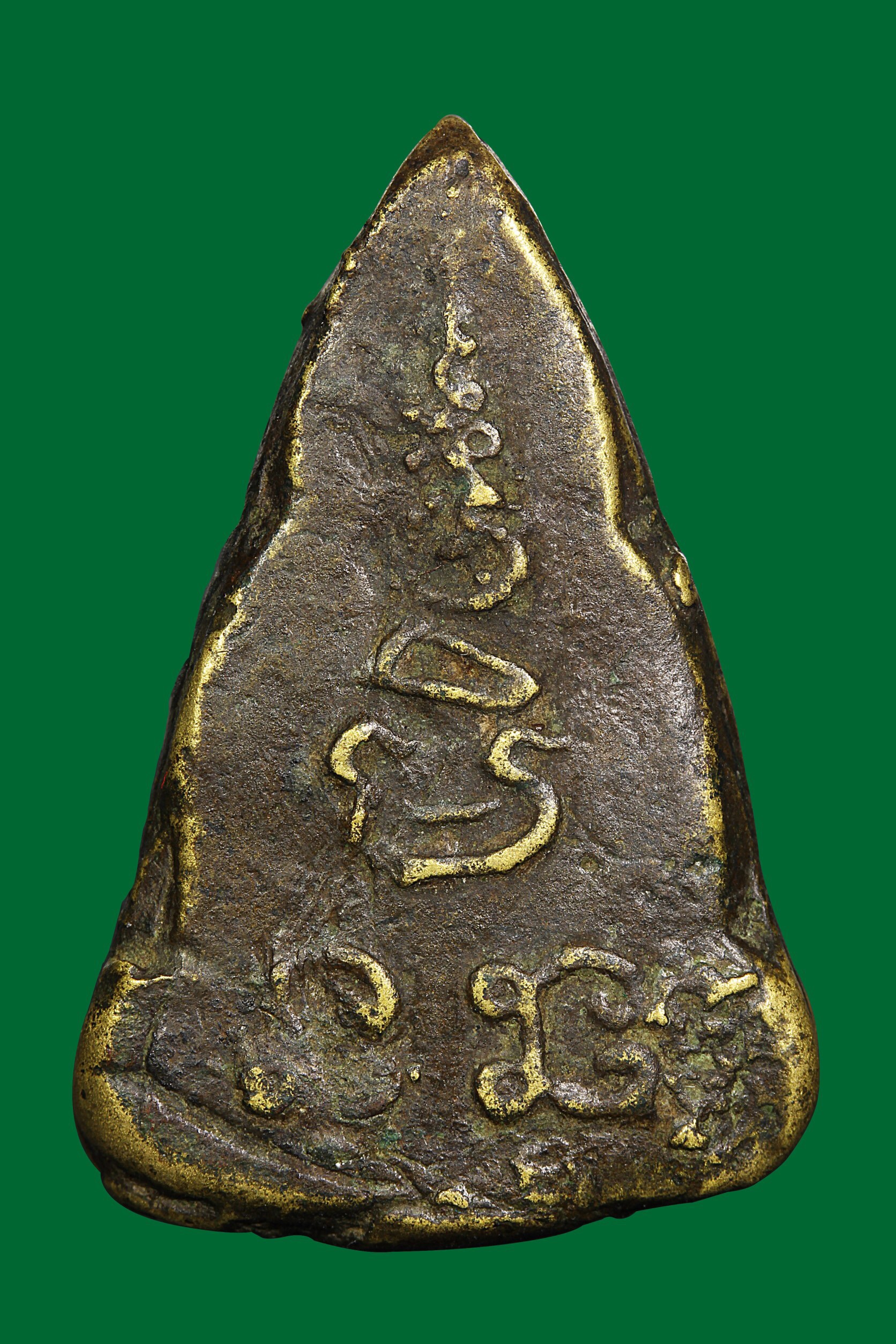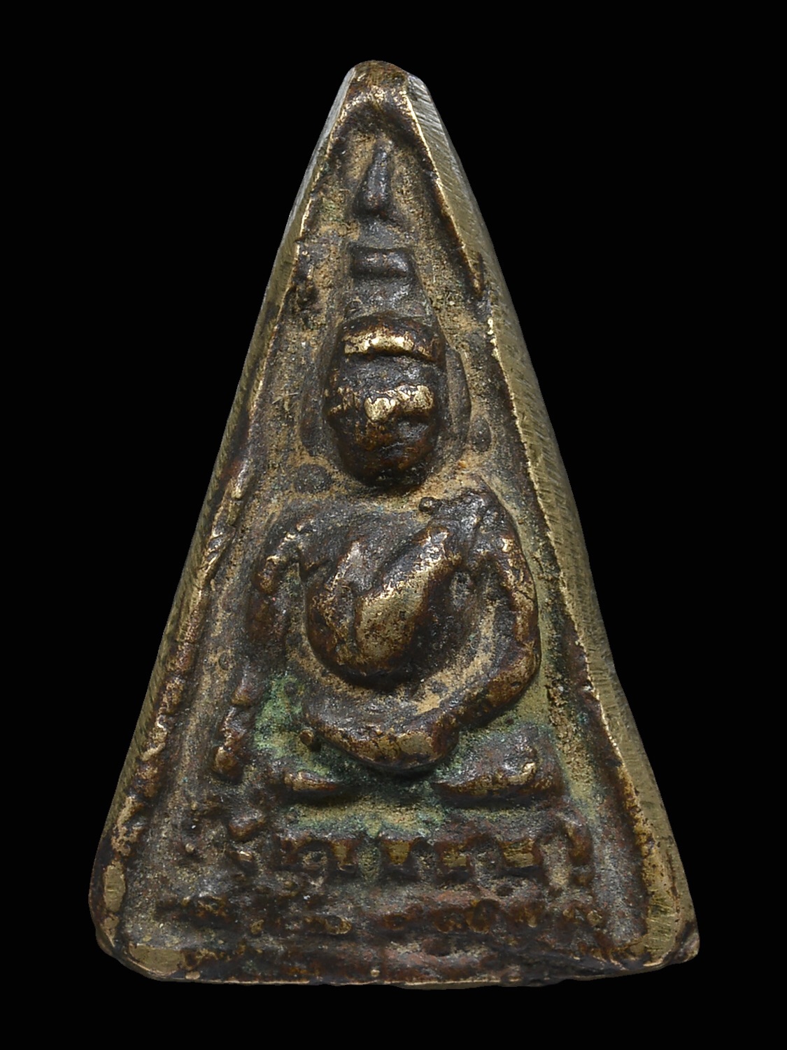 พระกรุ วัดสามปลิ้ม พิมพ์สามเหลี่ยม เนื้อน้ำมันลง ปิดทอง จังหวัดกรุงเทพฯ