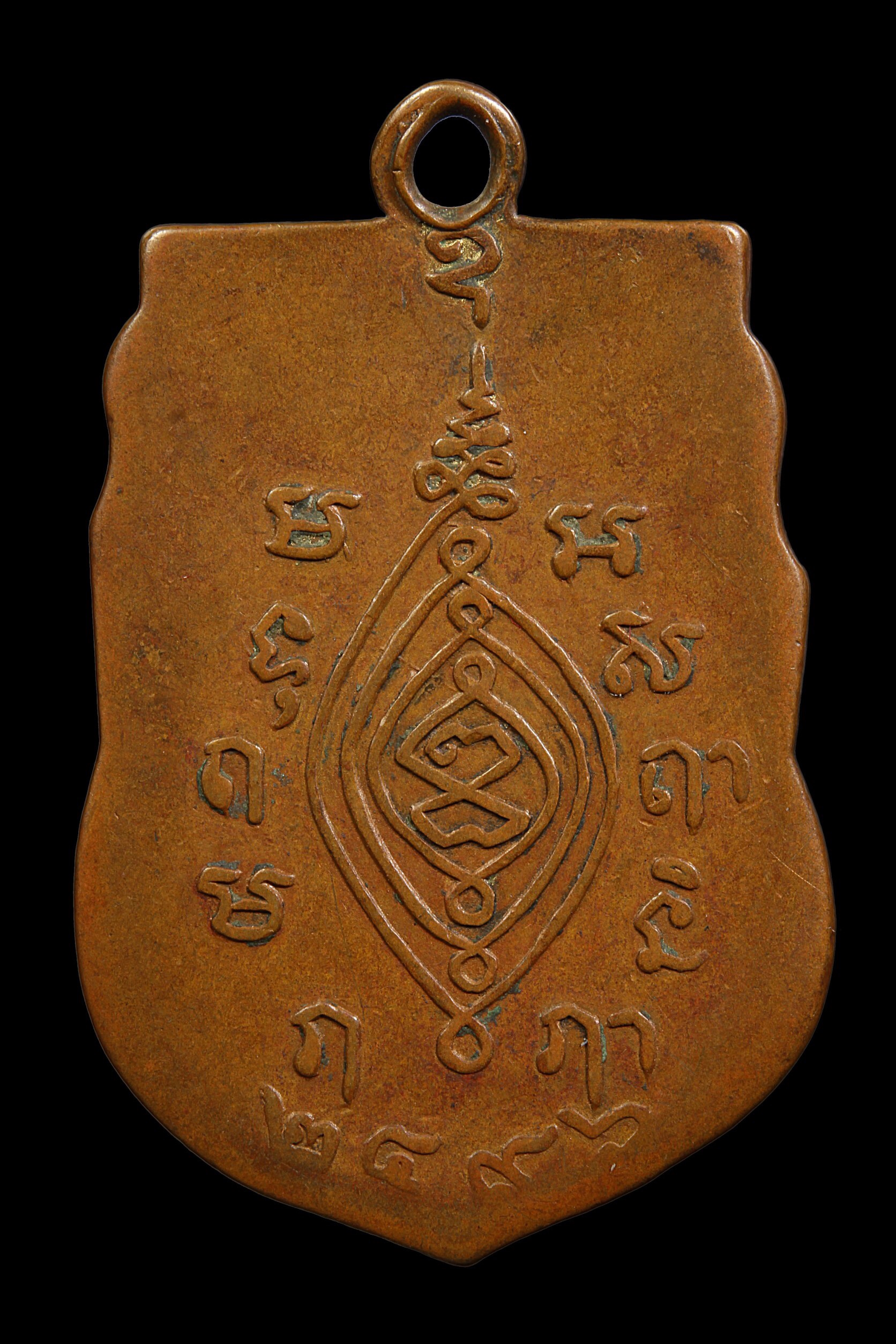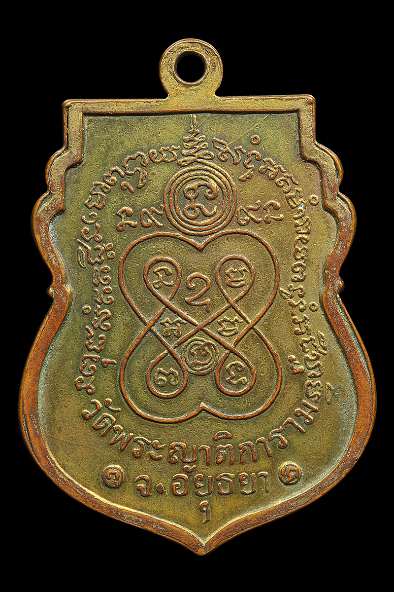 เหรียญหลวงพ่อสาย วัดพยัคฆาราม รุ่นแรก ปี 2462 เนื้อทองแดงรมดำ จังหวัดลพบุรี