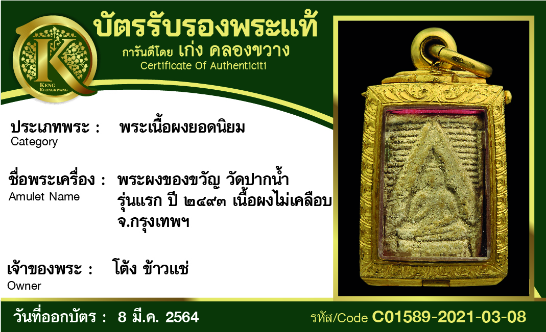 การันตีพระแท้ 100% พร้อมบัตรรับรองพระแท้ เก่ง คลองขวาง