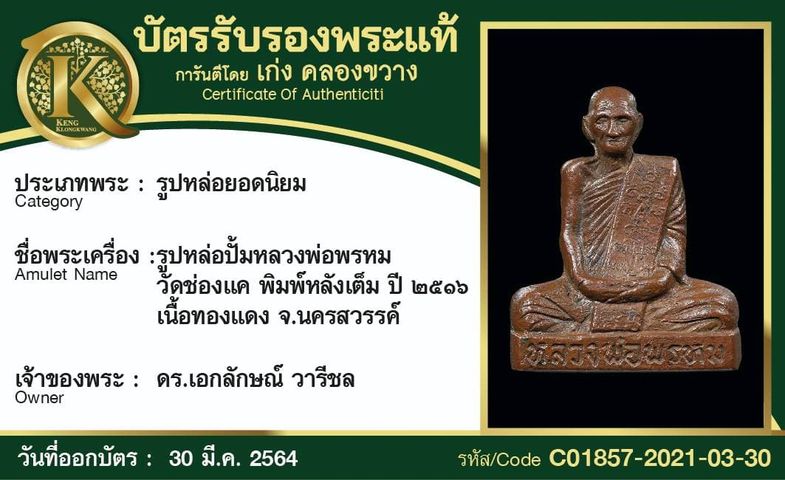 การันตีพระแท้ 100% พร้อมบัตรรองแท้ เก่ง คลองขวาง
