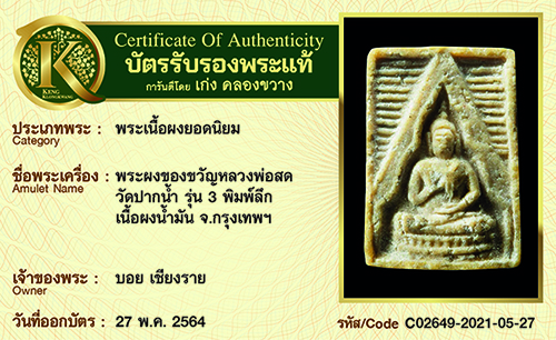 พระผงของขวัญหลวงพ่อสด วัดปากน้ำ รุ่น 3 พิมพ์ลึก ปี 2499 เนื้อผงน้ำมัน จังหวัดกรุงเทพฯ